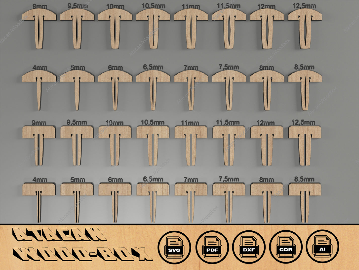 9mm, 9.5mm, 10mm, 10.5mm, 11mm, 11.5mm, 12mm, 12.5mm