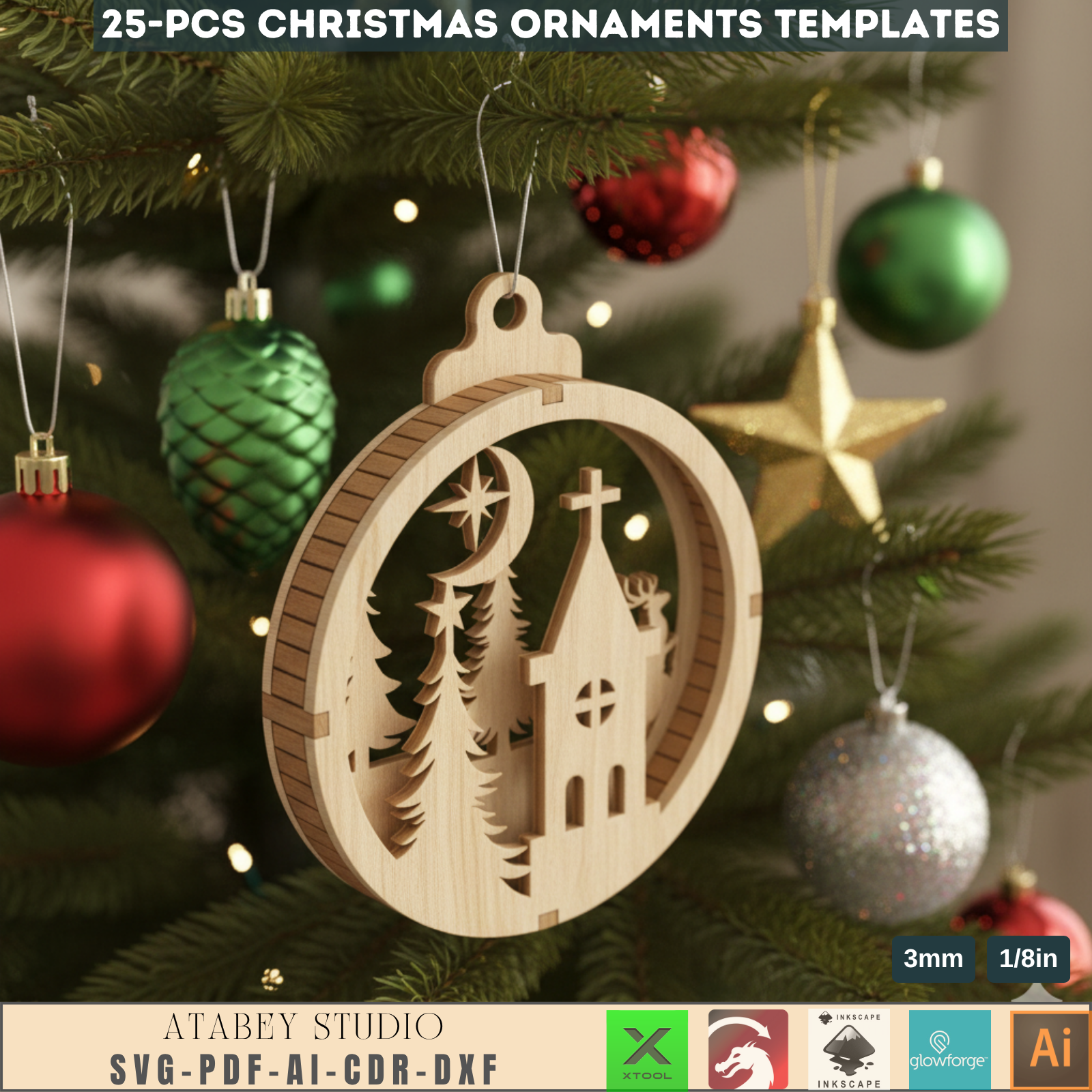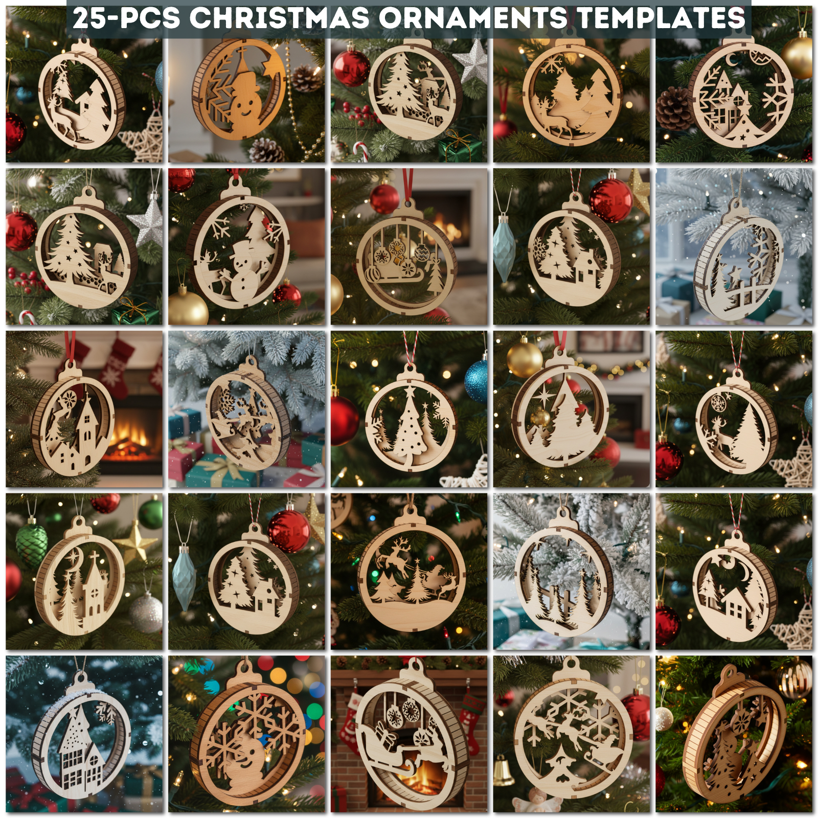 25 Christmas Ornament Templates for Laser Cutting | Round Xmas Bauble Designs | Holiday Tree Hanging Decor Craft Pattern