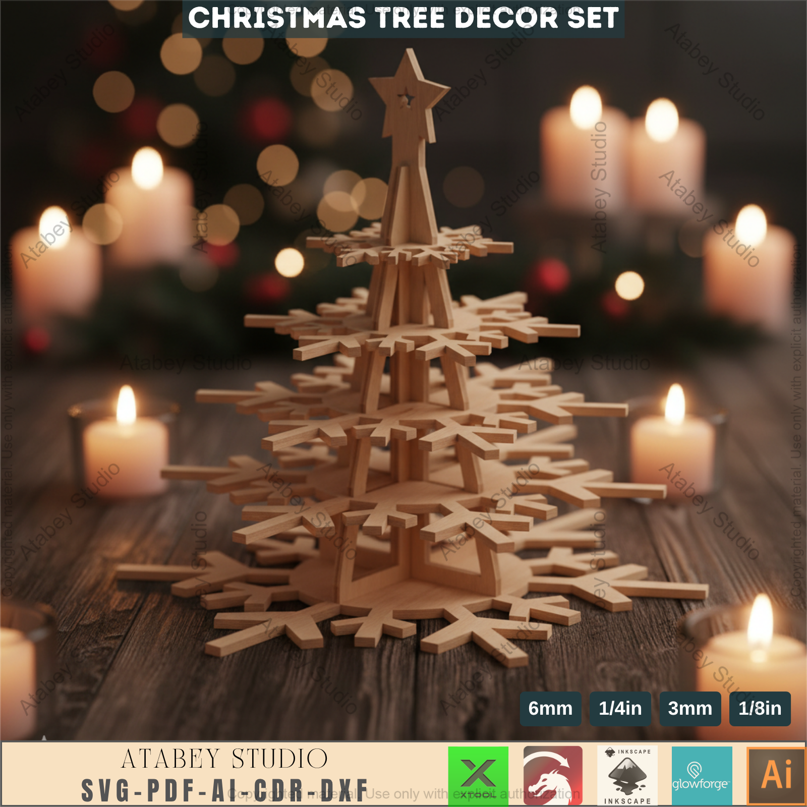 3D Christmas Snowflake Tree Decor Template for Laser Cutting | Standing Holiday Ornament Design for Glowforge, xTool, Lightburn Machines 965