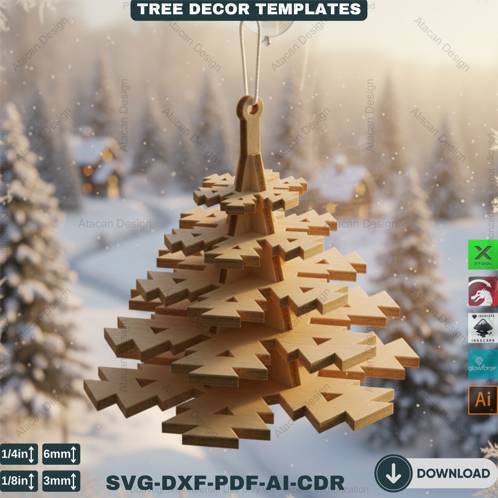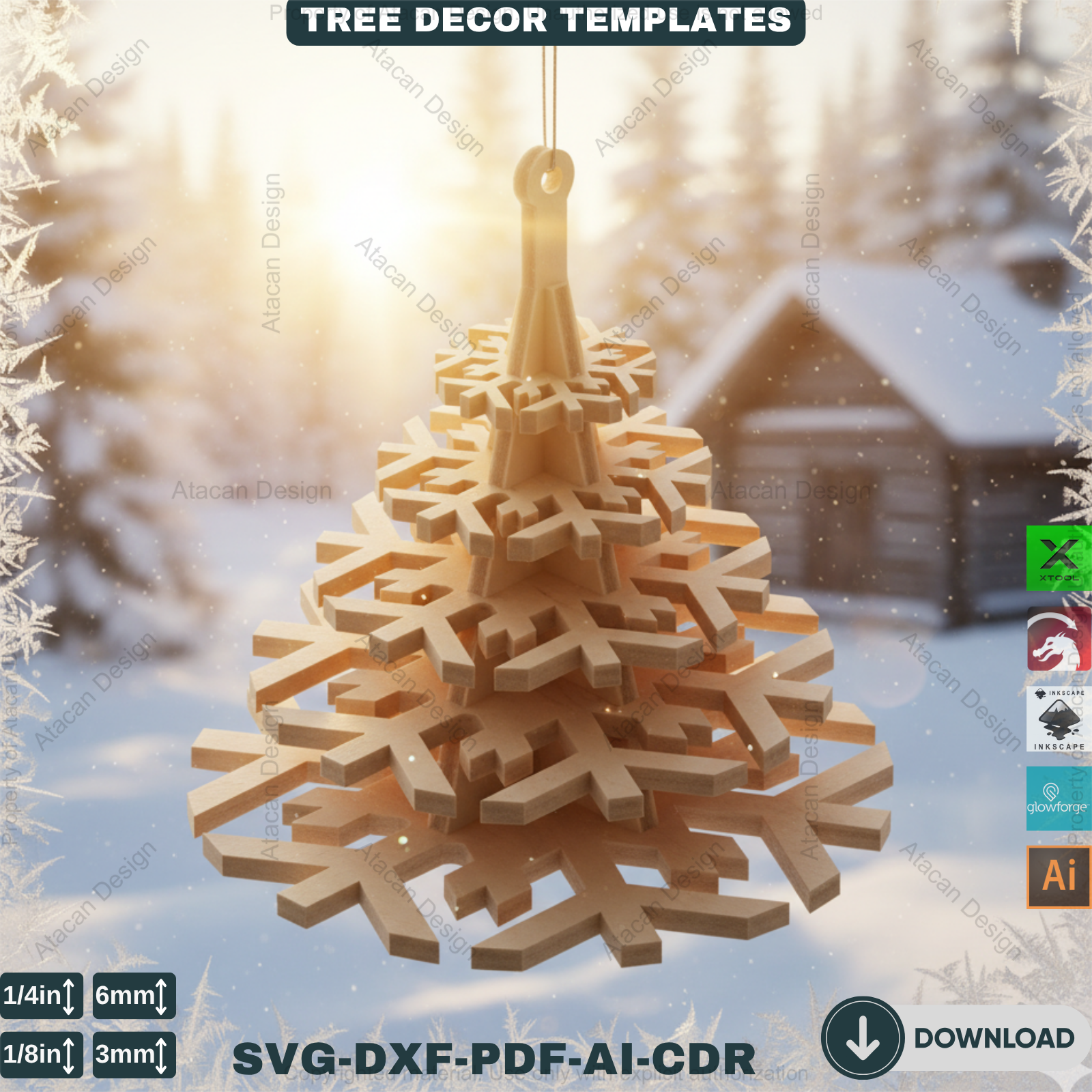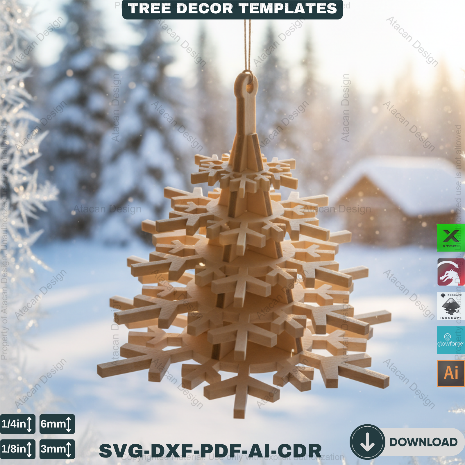 3D Christmas Tree Laser Cut File, Rustic Snowflake Holiday Decor, DIY Winter Tabletop Centerpiece for Glowforge & xTool 908