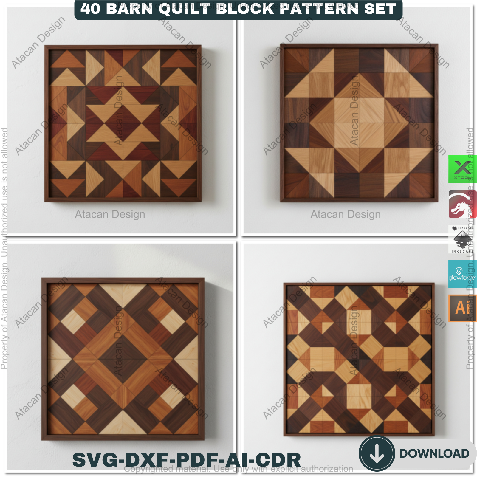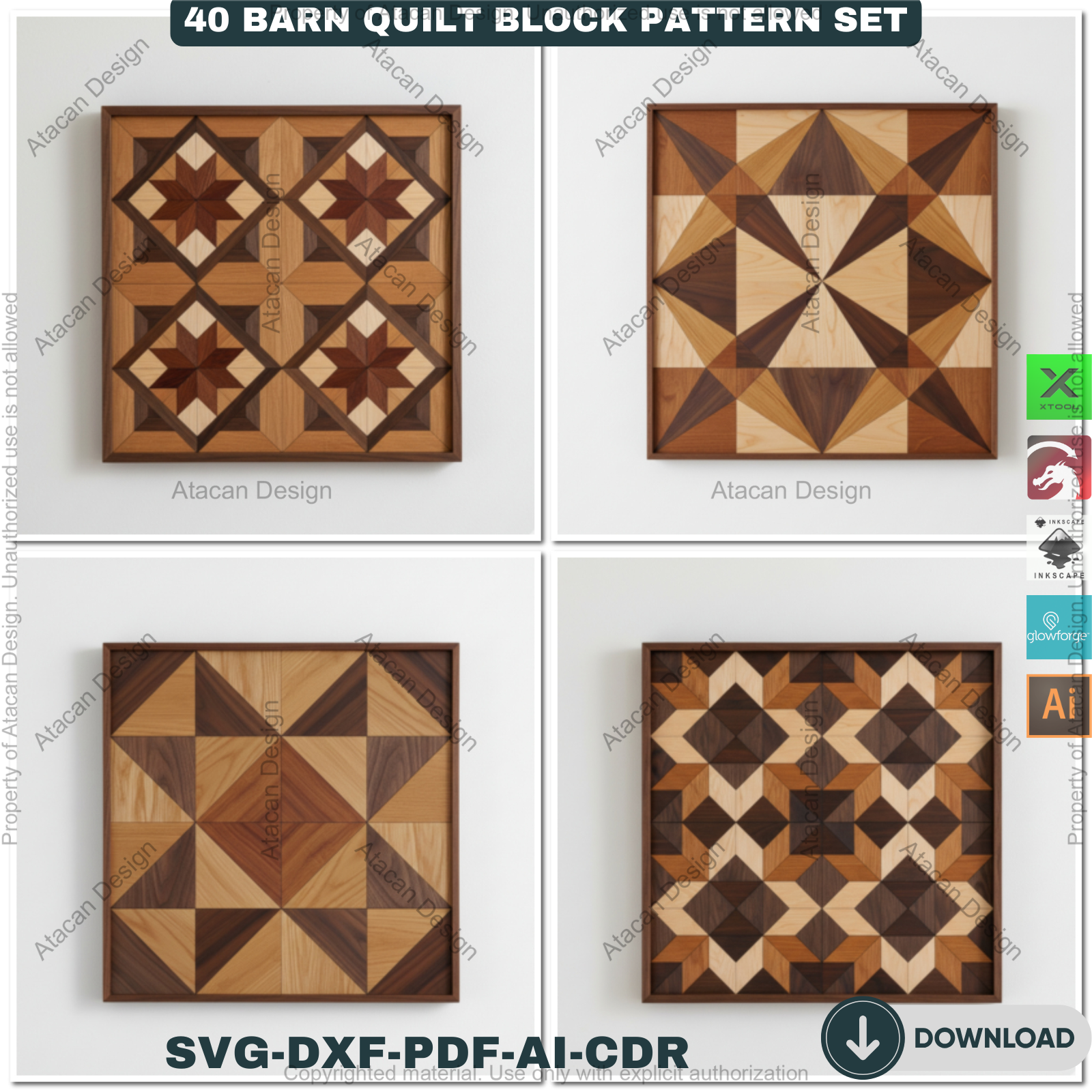 40 Barn Quilt Patterns Mega Bundle DIY Laser Cut Patchwork Blocks Templates for Glowforge Xtool 913