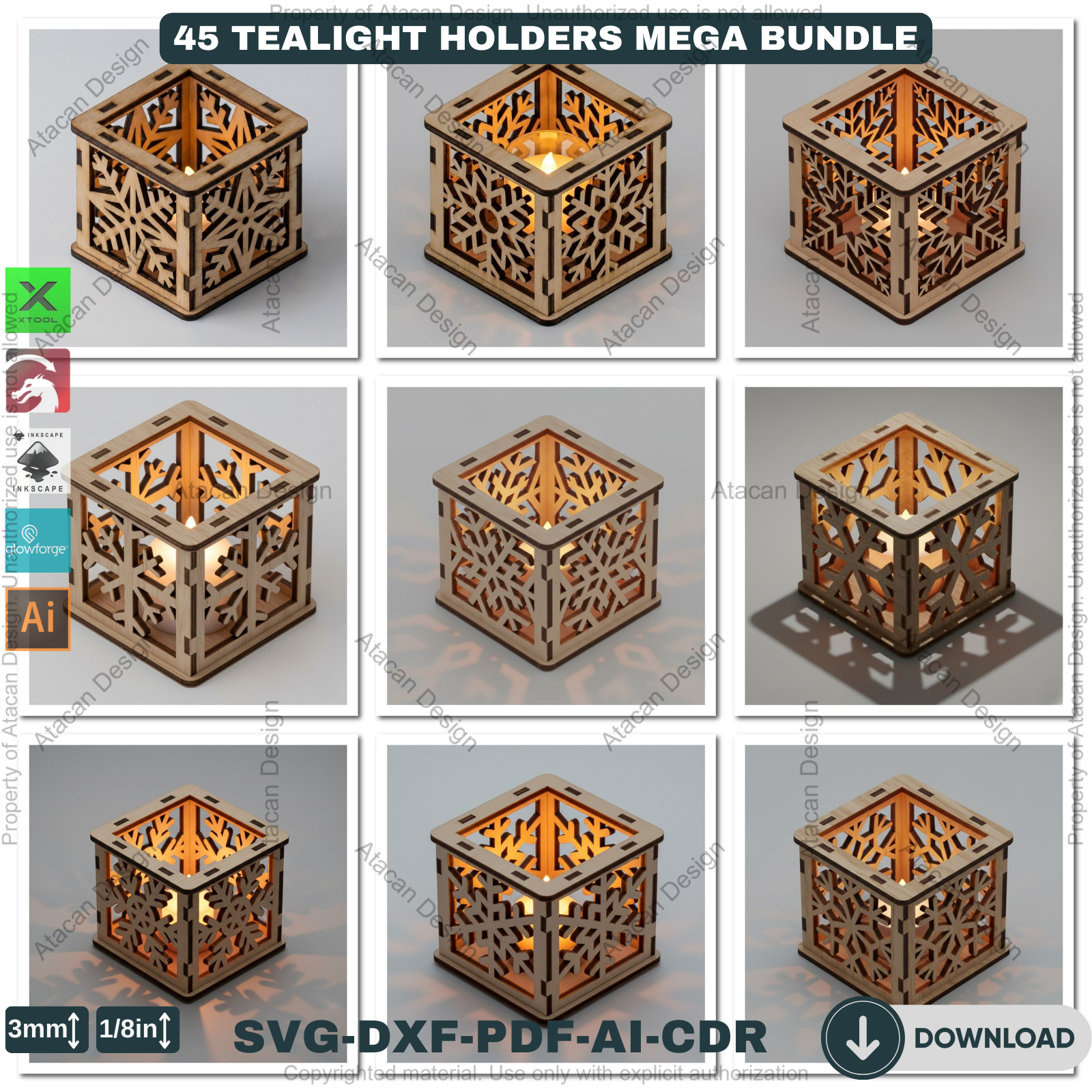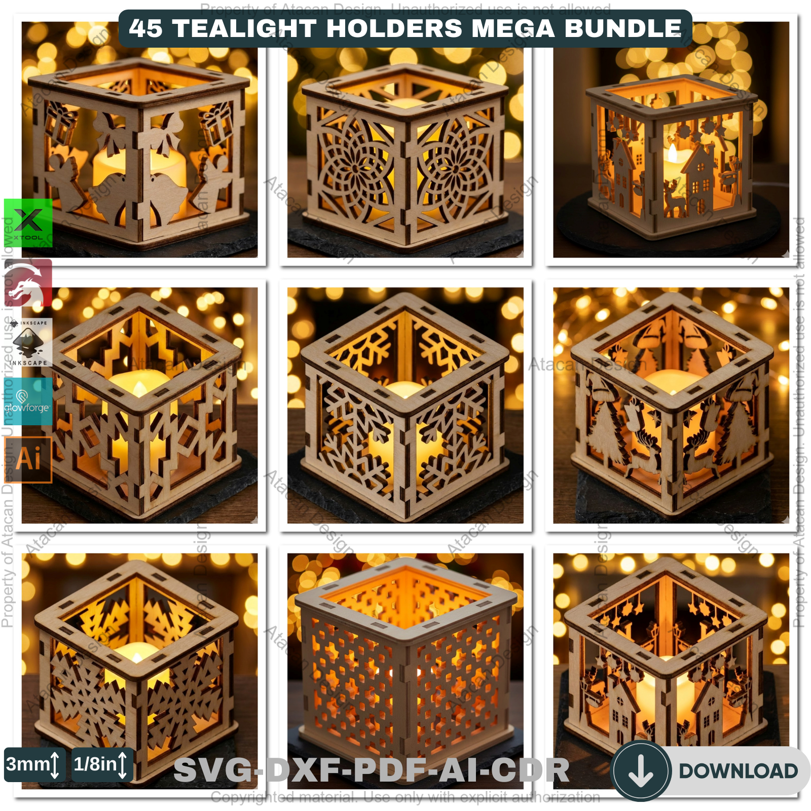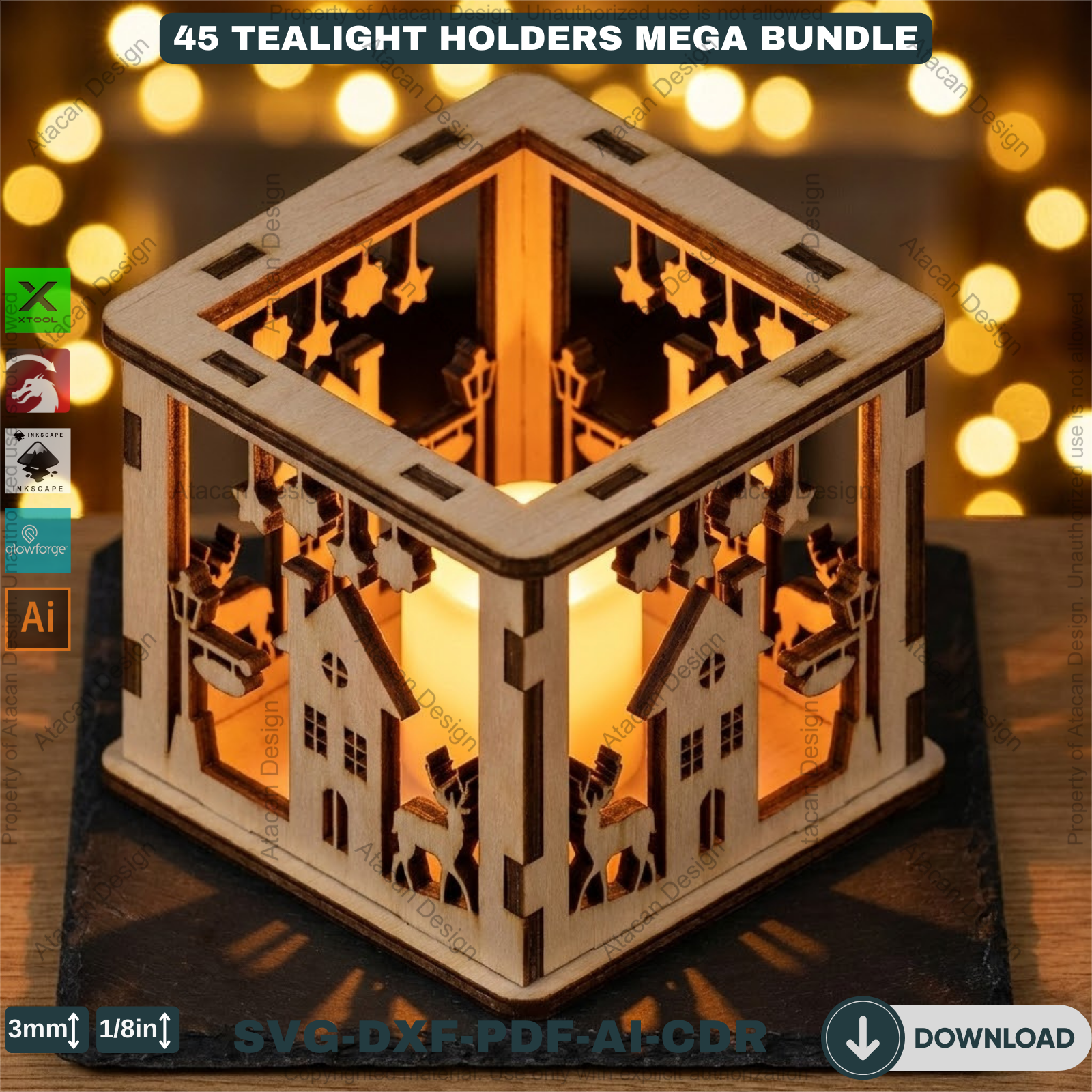 Create a warm and festive atmosphere with this 45-Design Christmas Lantern & Tealight Holder Bundle, crafted especially for laser cutting enthusiasts. These detailed designs allow you to produce beautiful candle boxes, glowing tabletop accents, and charming seasonal décor that customers and loved ones adore.