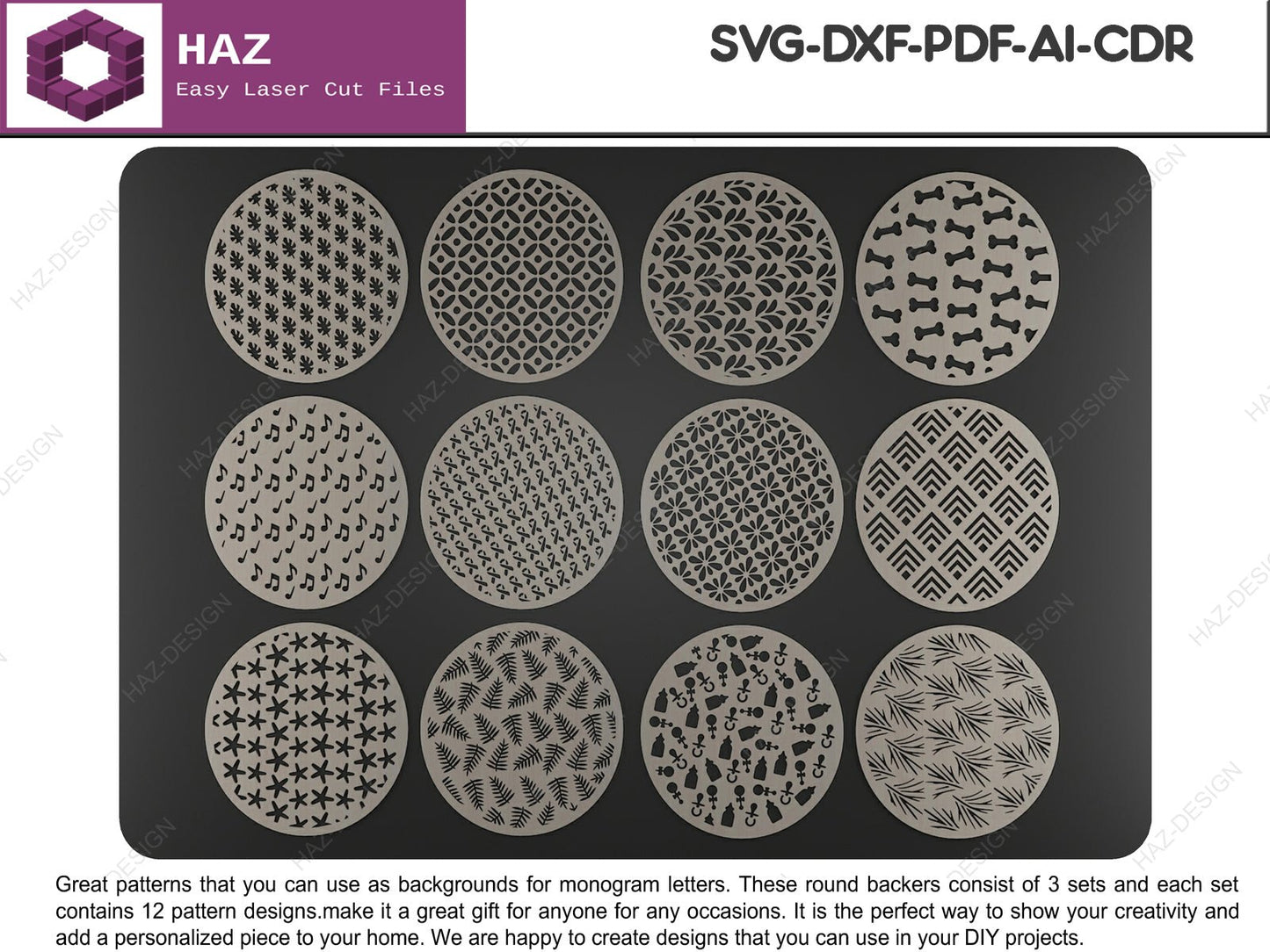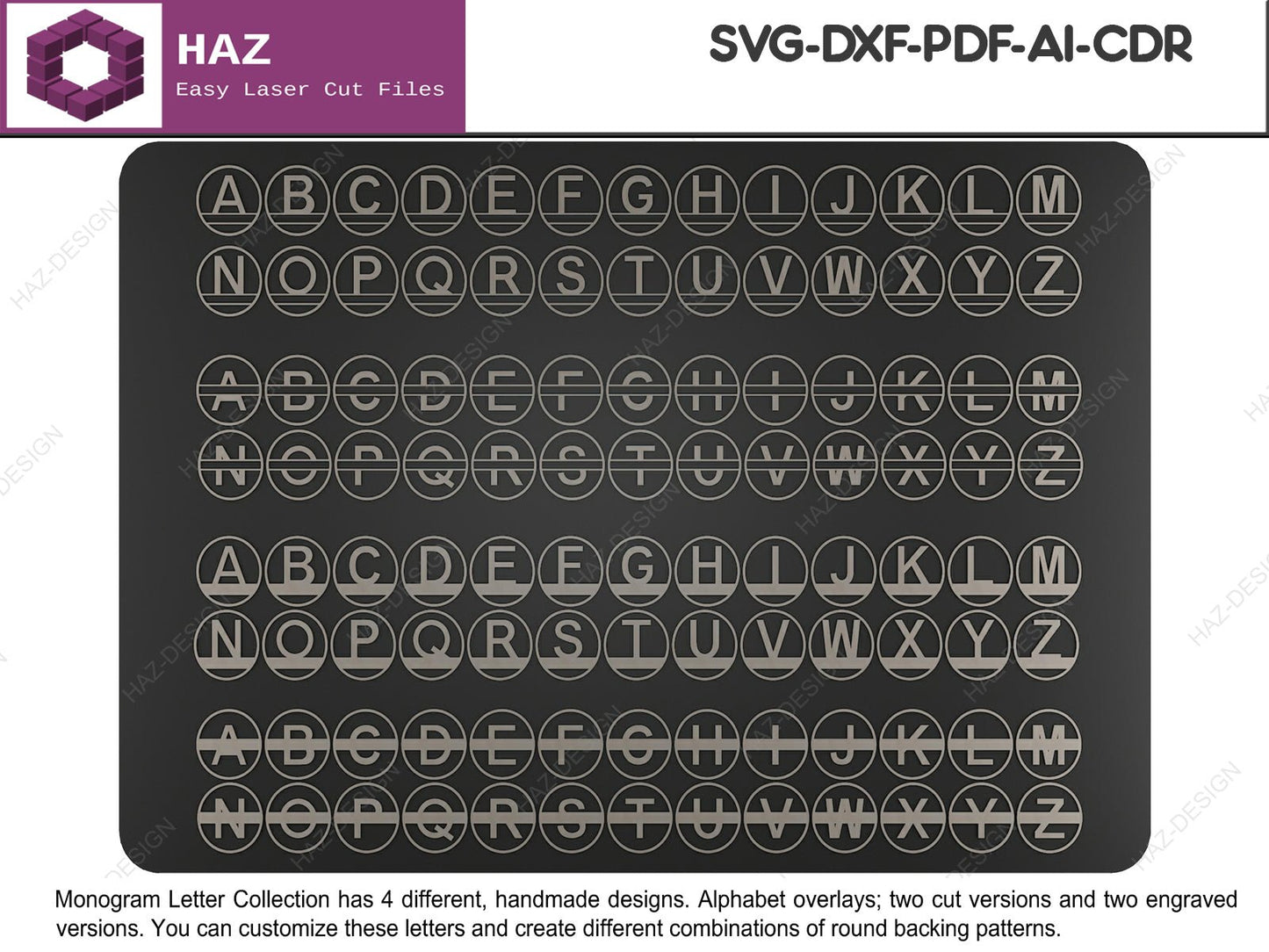 01 Alphabet Monogram Pattern Bundle / 36 Backer Pattern Designs Included / Customizable Letter Designs SVG Ai DXF CDR 080