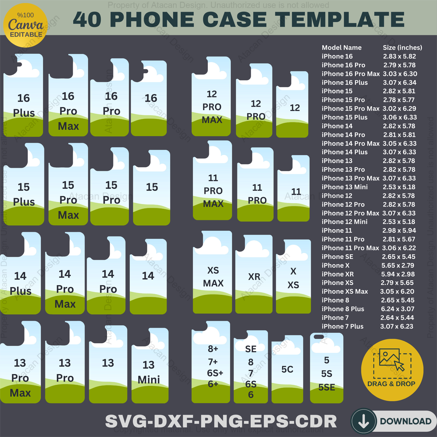 Bundle Phone Case Template for sublimation / All iphone Models Case Svg Template / 16 pro max Case Sublimation / Canva Editable 318