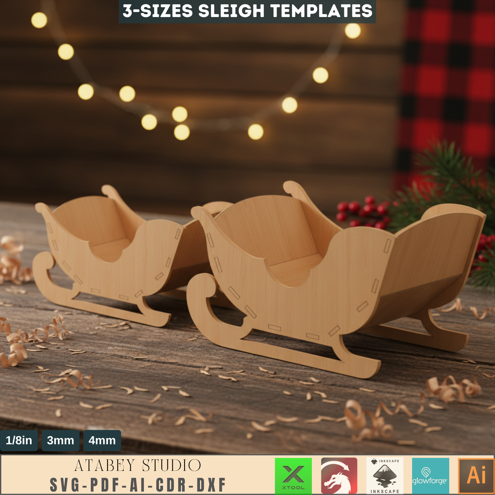 Our 3D Santa Sleigh design is versatile and perfect for a variety of holiday decorations. Use these sleighs as centerpieces, gift holders, or festive decor around your home or office. They are ideal for use with a variety of laser cutting machines including Glowforge, Xtool, Omtech, Gweike, and many more.