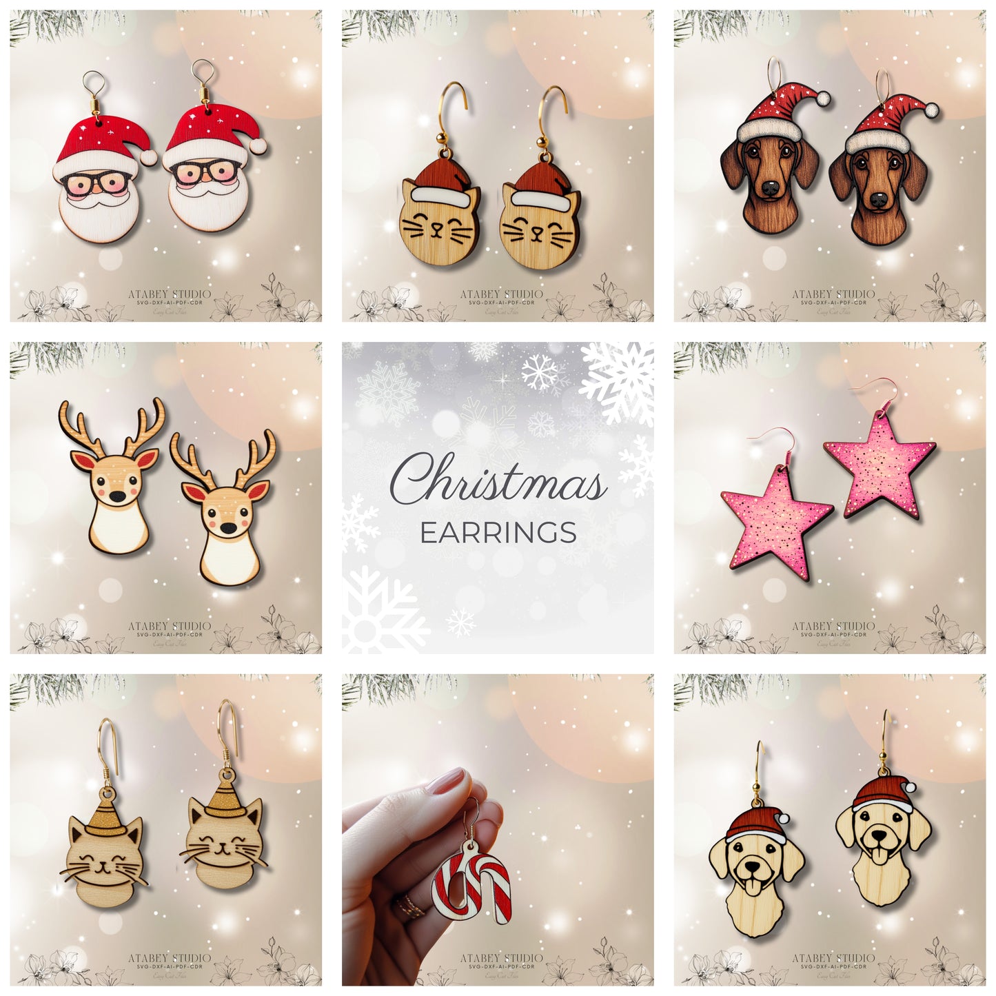 Christmas Earrings SVG Bundle for Laser Cutting | Holiday Design Collection for Craft Projects
