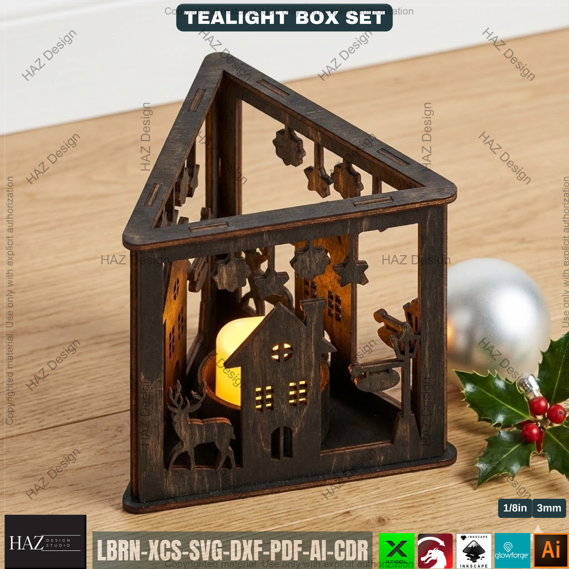 Welcome to HAZ Design Studio! Get ready to transform ordinary wood into extraordinary Christmas decor. This listing is for a digital laser cut file set designed to create stunning Triangular Tealight Boxes.
