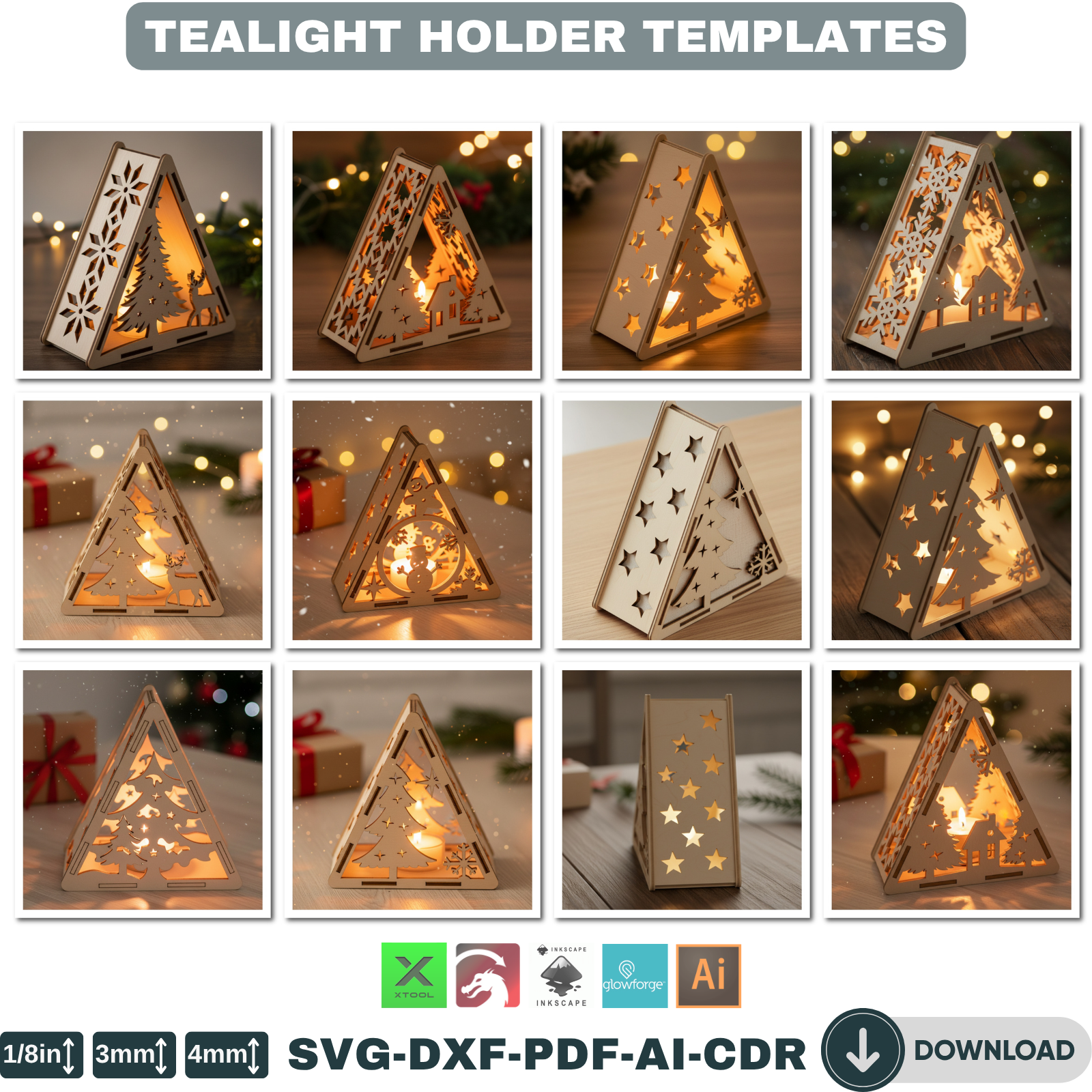 Christmas Pyramid Candle Holders - Tealight Laser Cut Lamp Designs for Night Light Decoration 778