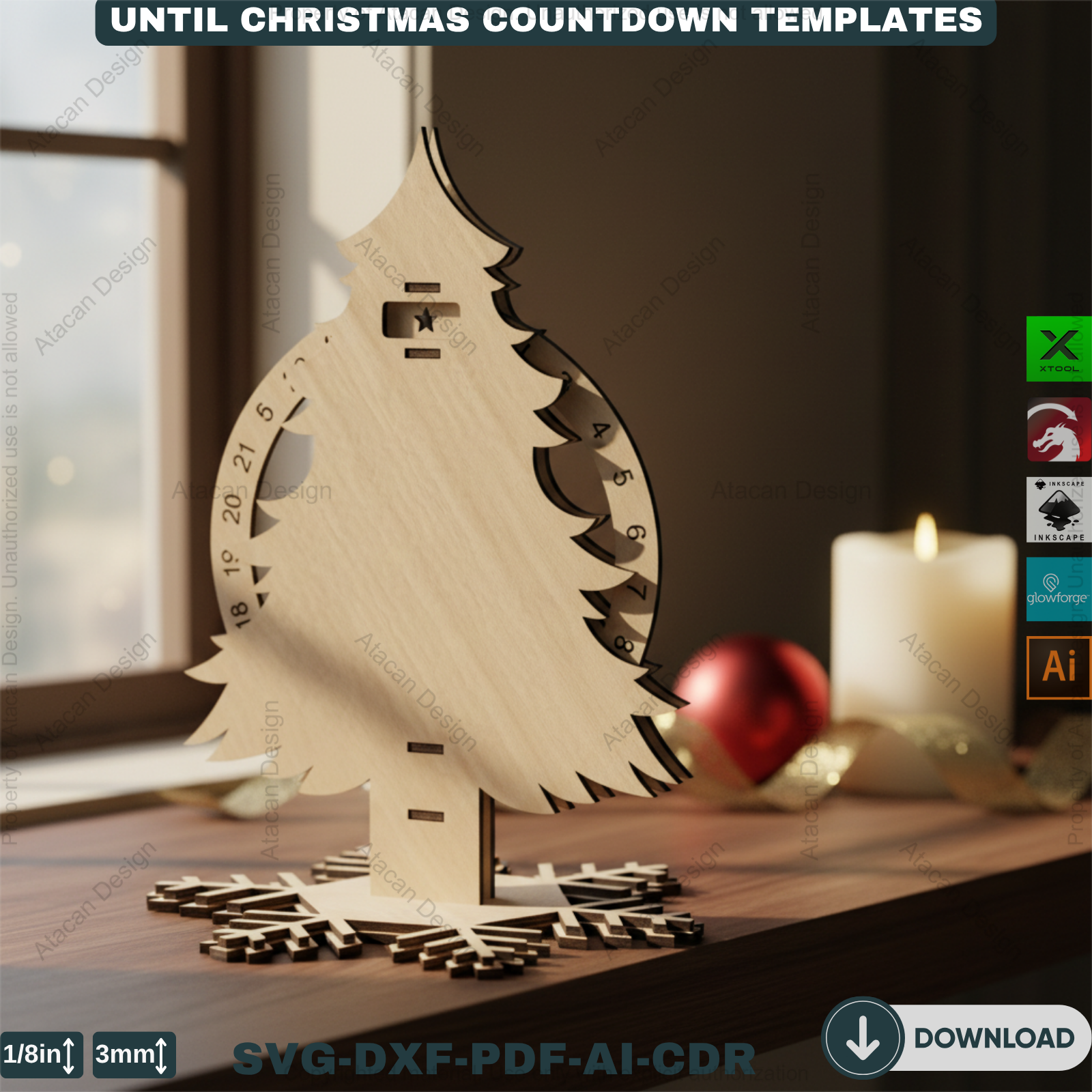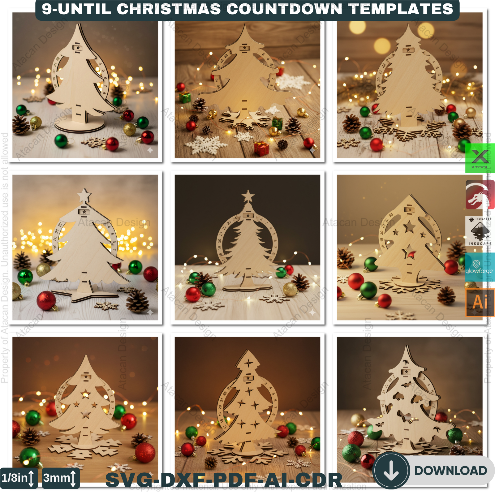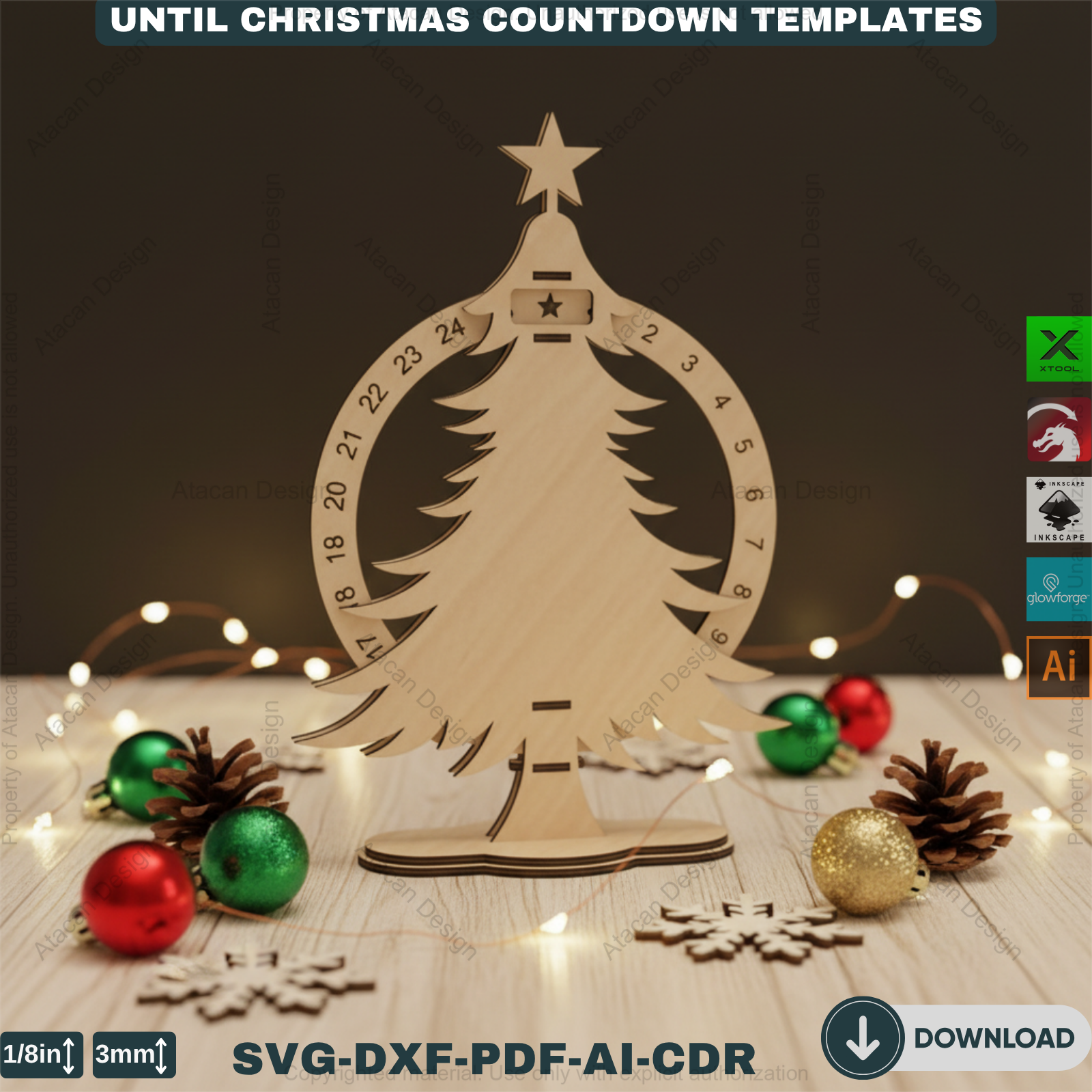 Christmas Tree Advent Calendar Laser Cut Template Bundle Wooden Countdown Stand Glowforge Xtool Files 915