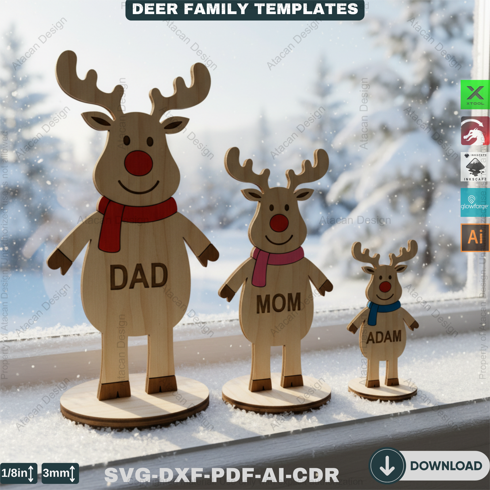 Create a heartwarming and festive centerpiece for your home this holiday season with our enchanting Deer Family digital templates! This instant download provides everything you need to craft a beautiful, personalized set of freestanding reindeer, perfect for adorning your mantle, shelf, or tabletop. Imagine the smiles as your family sees their names elegantly engraved on their very own wooden reindeer.