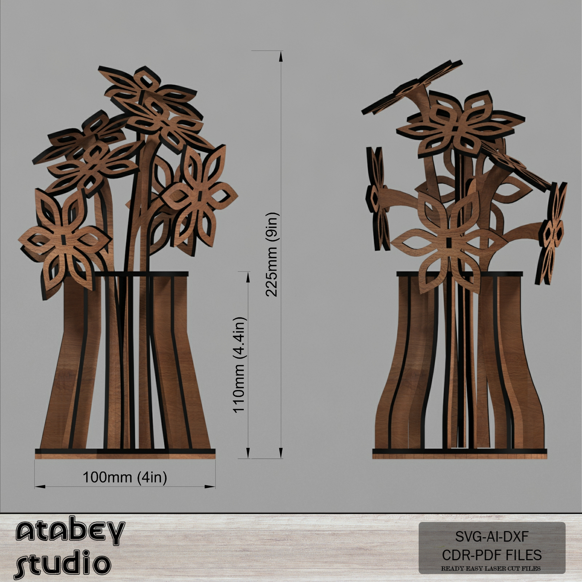Wooden Vase with Flowers - Laser Cut Flower Pot - 3D Bouquet Vase Template