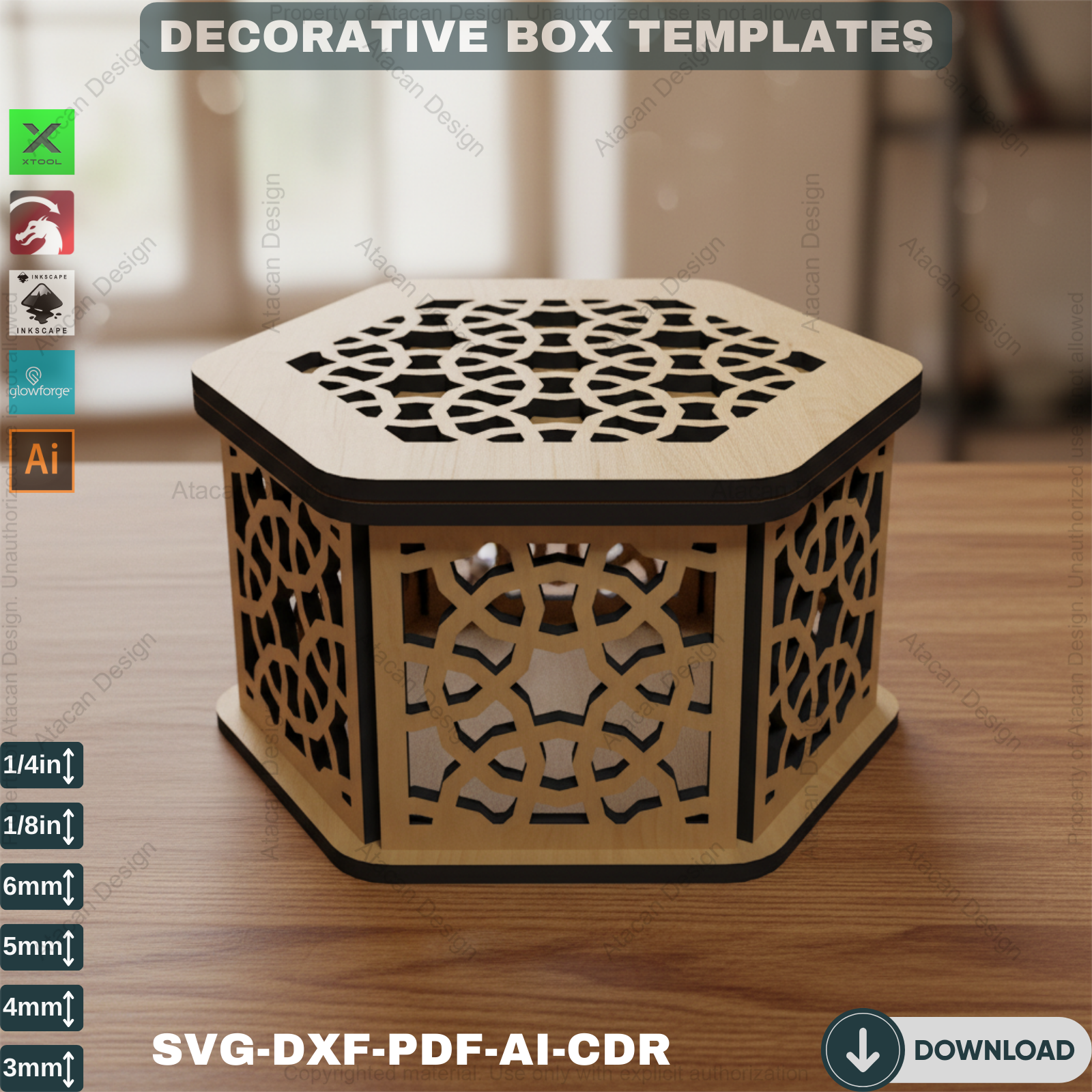 Elevate your crafting game with our exquisite Hexagon Laser Cut Gift Box Templates! 🎁 Perfect for adding a touch of elegance to any occasion, these digital files allow you to create stunning wooden decorative boxes that are ideal as wedding favors, charming jewelry cases, or unique gift packaging.