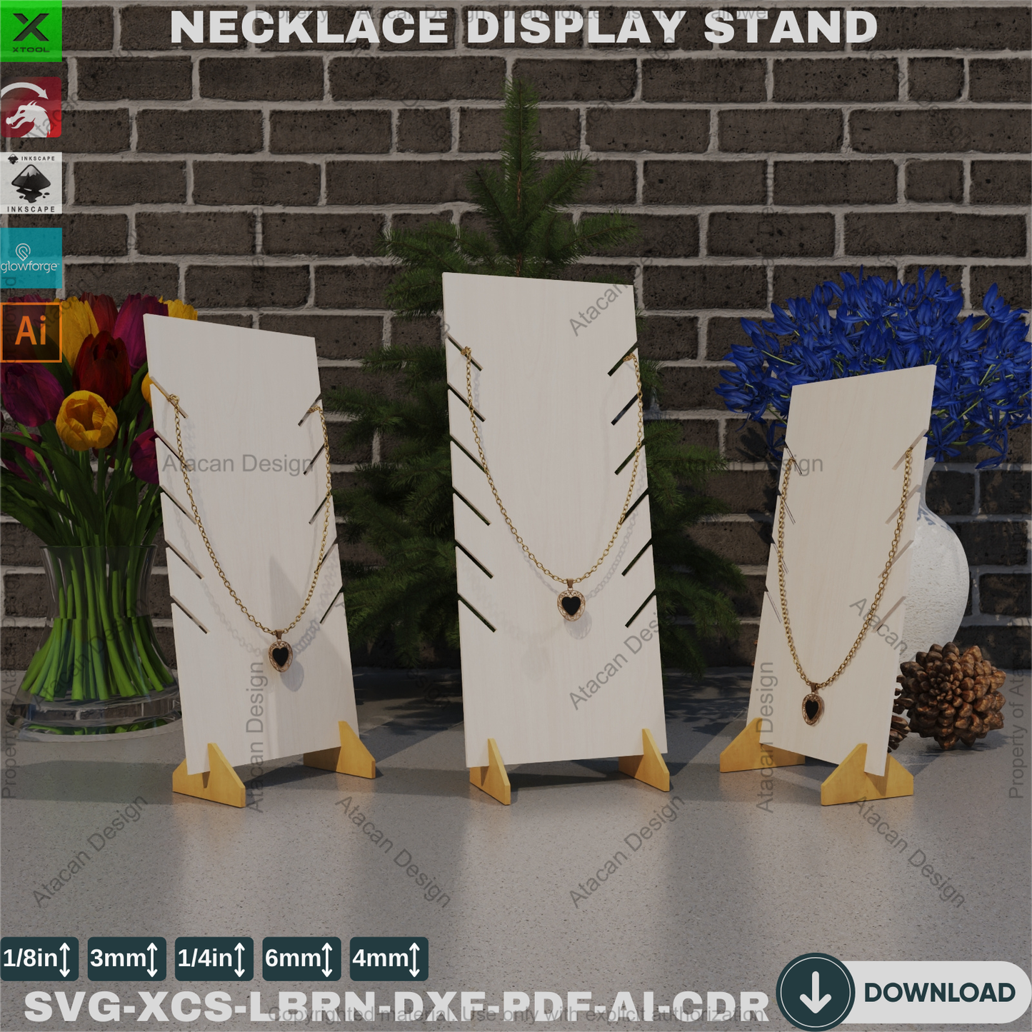 Unleash your creativity and elevate your jewelry displays with our meticulously crafted Laser Cut Necklace Display Stand digital design! This versatile design is perfect for showcasing your beautiful necklace creations, whether you're a small business owner, a craft enthusiast, or simply someone who loves a stylish way to organize their jewelry.