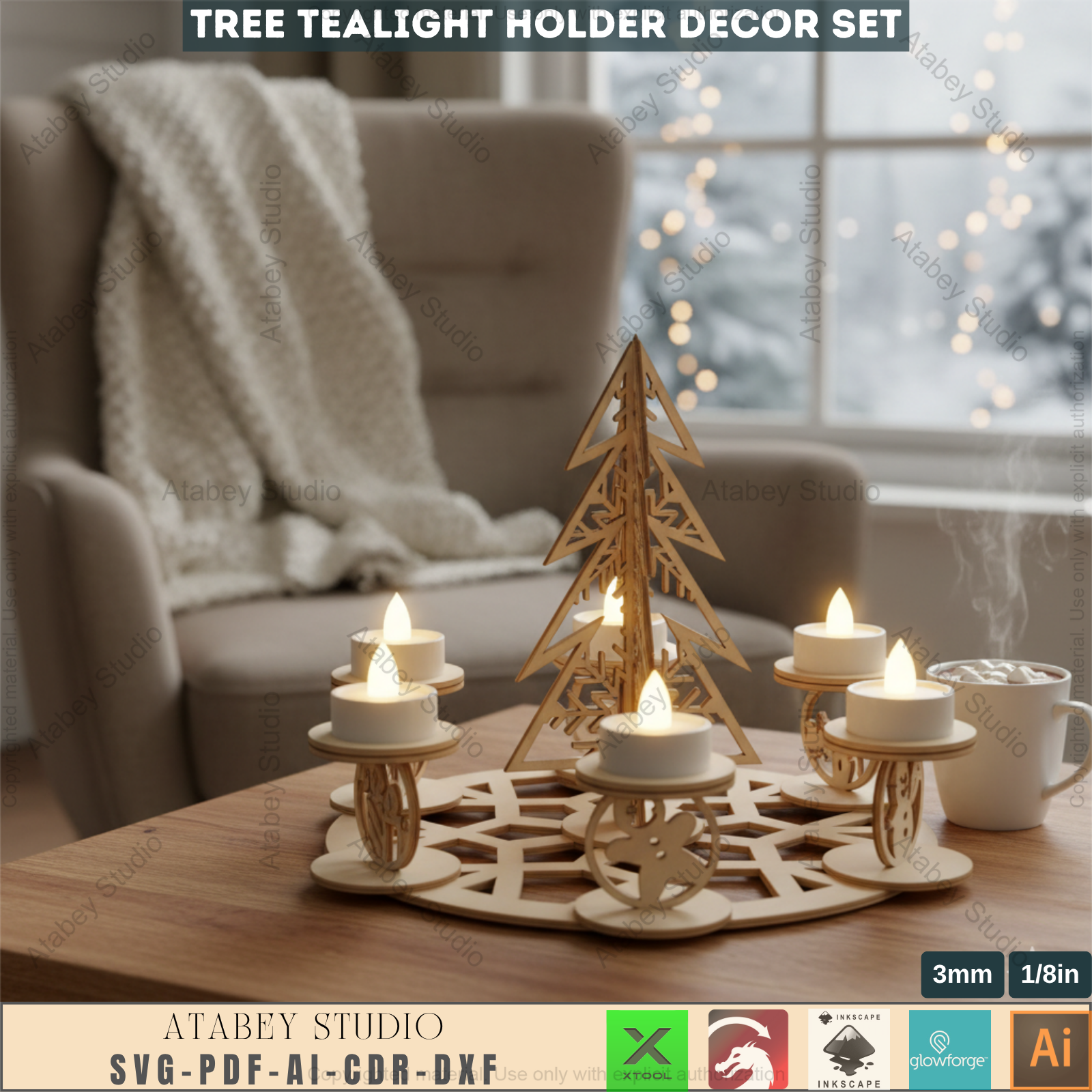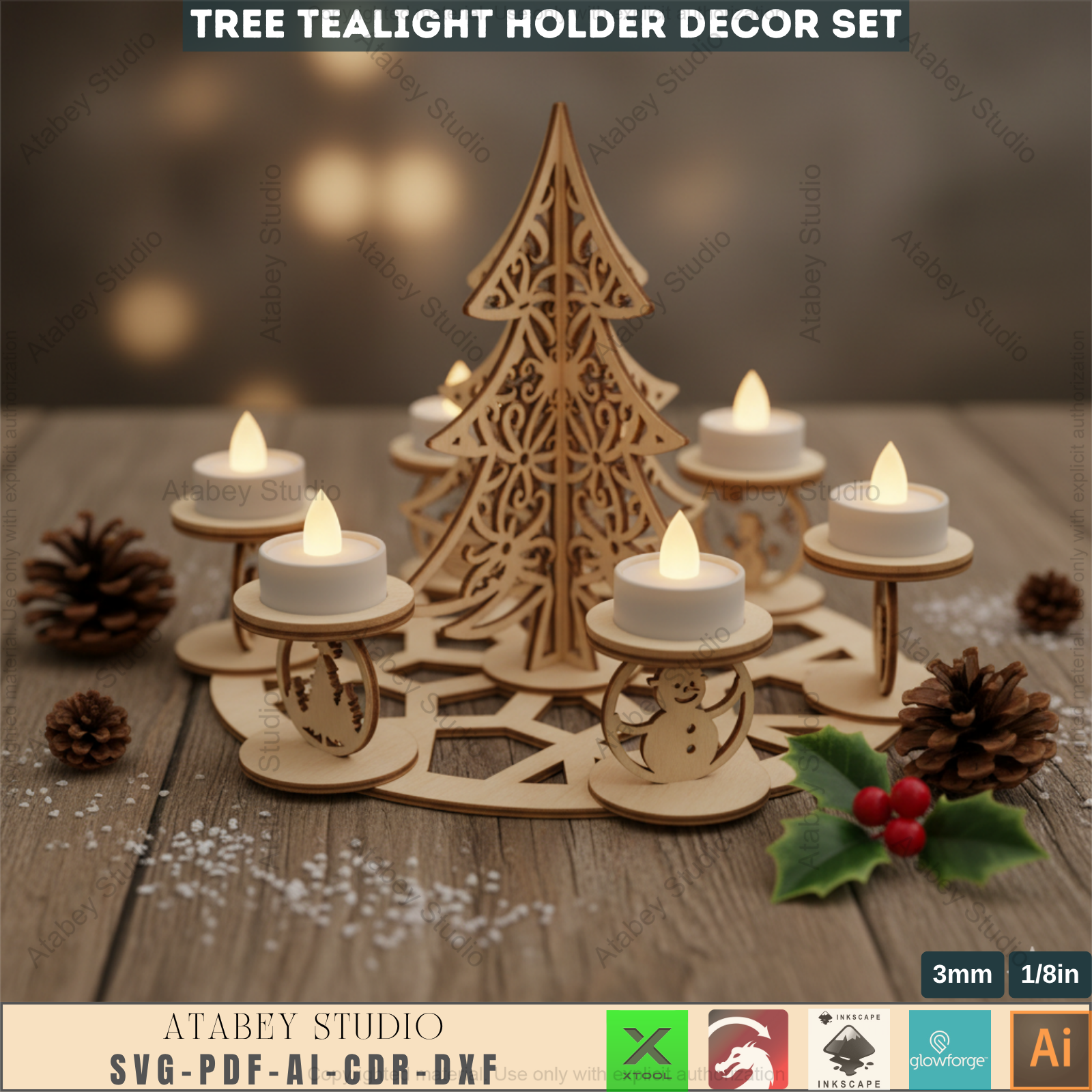 Bring the warm glow of the holidays into your home with this beautiful 3D Christmas Tree Candle Holder Template! Designed for laser cutting, this festive tealight stand features intricate snowflake details and elegant tree silhouettes — perfect for adding cozy charm to your Christmas table, mantel, or Advent wreath display.
