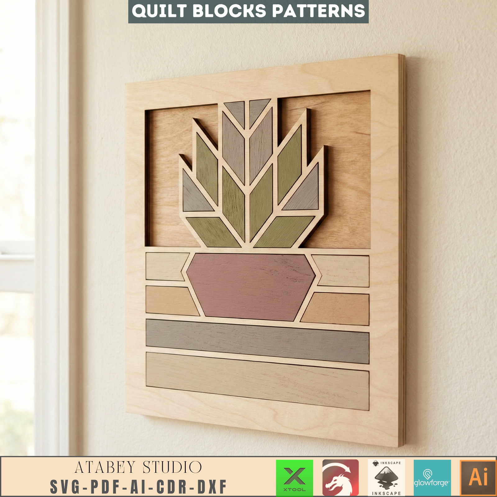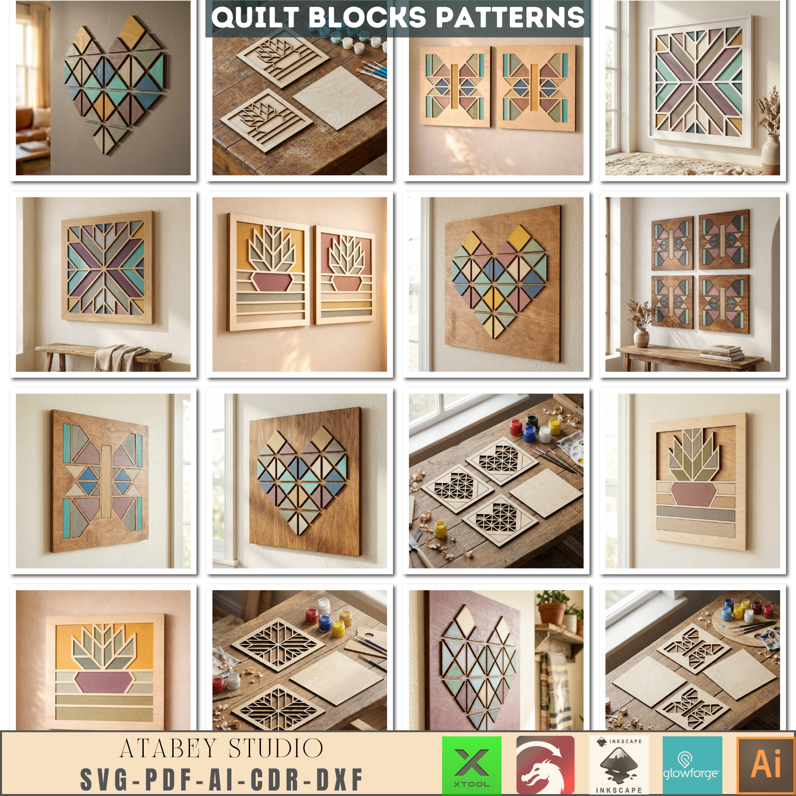 Welcome to your next favorite crafting project! Bring a touch of warm, modern farmhouse charm to any space with our beautiful Quilt Block Wall Art collection. Featuring carefully designed geometric heart, butterfly, and potted flower patterns, these versatile templates are perfect for creating stunning, dimensional wooden signs that your family, friends, and customers will absolutely love.