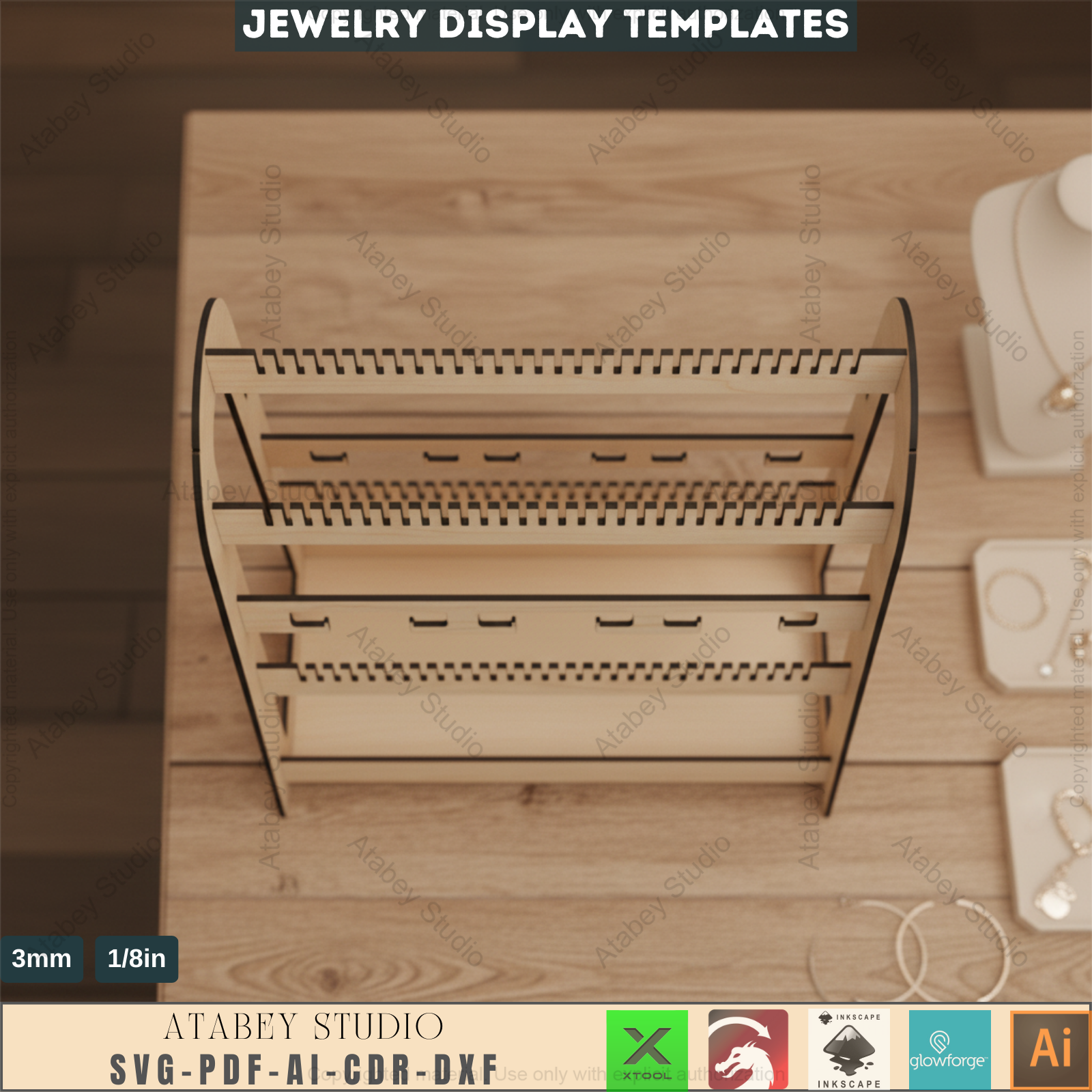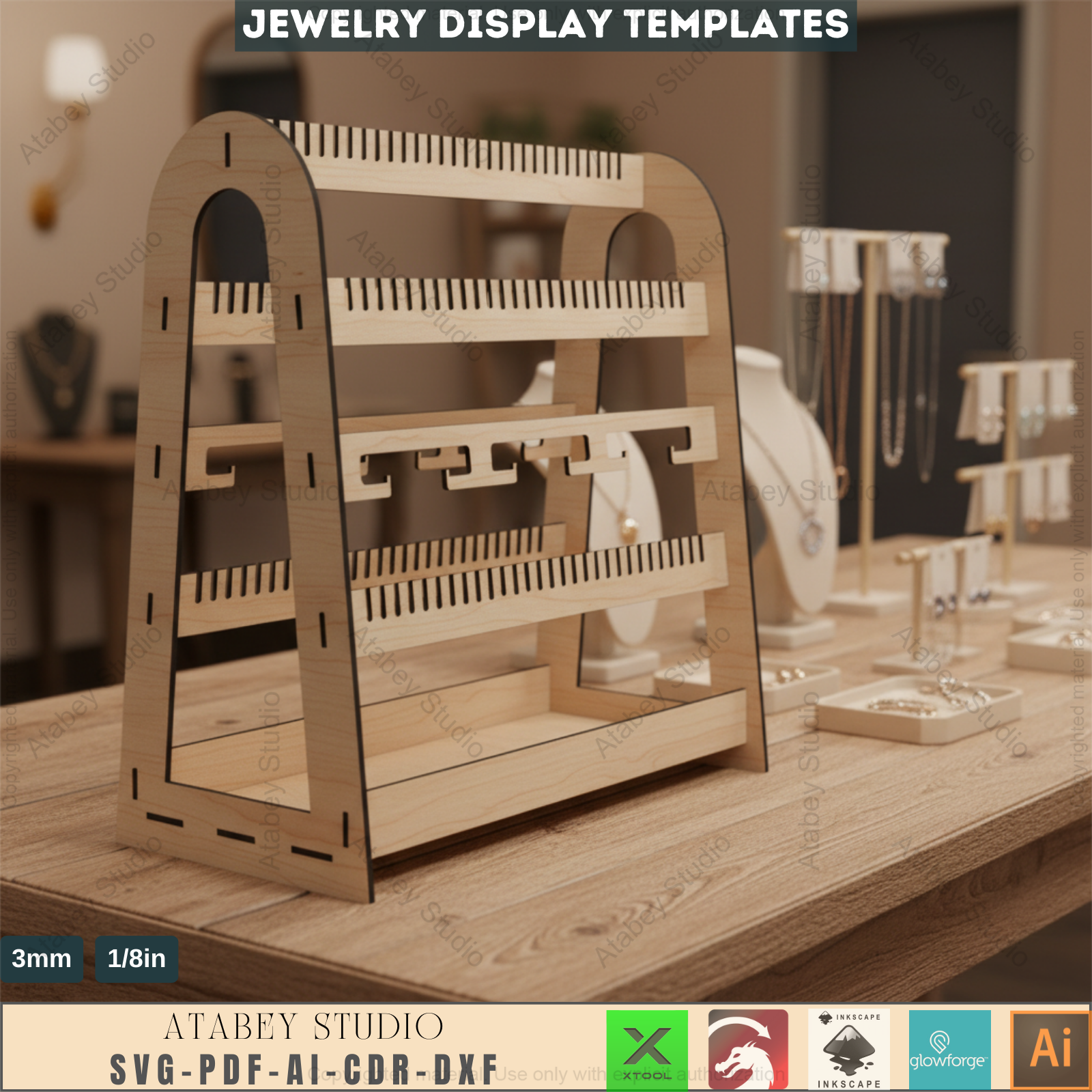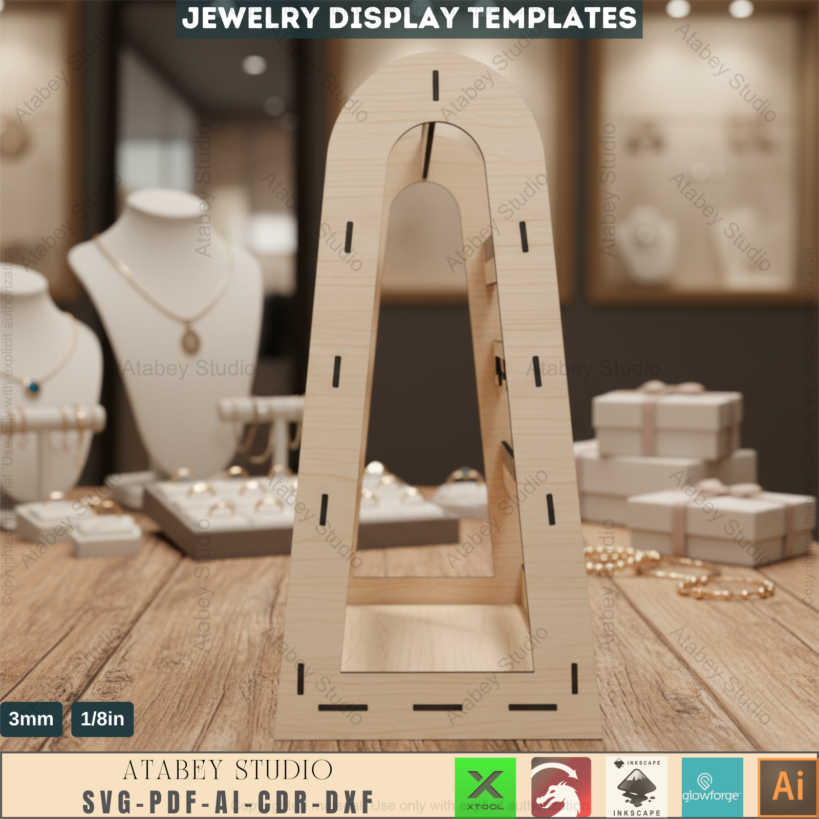Introducing our Wooden Jewelry Display Stand! This versatile piece is perfect for showcasing your beautiful collection of necklaces and ornaments. Crafted with precision using laser-cut technology, this stand offers a sleek and modern look to elevate your jewelry organization. With its decorative design, it adds a touch of natural elegance to your space. Whether you own a jewelry store or simply want to display your favorite pieces at home, this stand is an absolute must-have. The included SVG laser-cut ready files ensure quick and hassle-free assembly. Additionally, this listing offers the convenience of instant download, allowing you to start using and enjoying this stunning necklace holder in no time. Grab this irresistible design for yourself or as a thoughtful gift for a jewelry enthusiast. Enhance your jewelry display with our Wooden Jewelry Display Stand today!