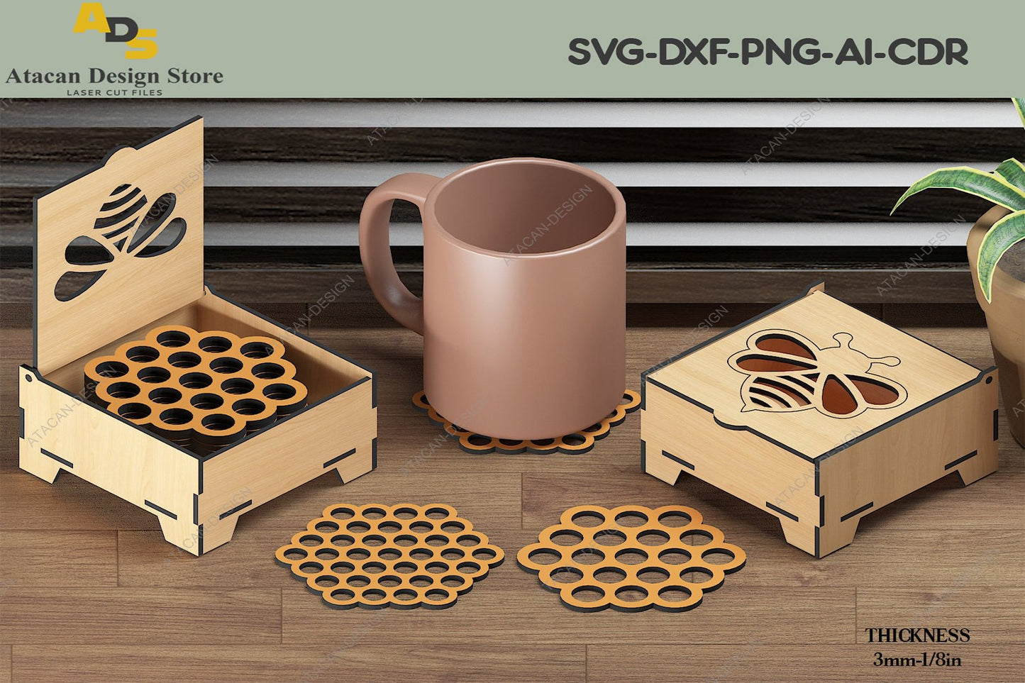 Honey Bee Coasters and Box / Honeycomb Hexagon Coaster / Geometric Laser Pattern SVG DXF CDR Ai 305