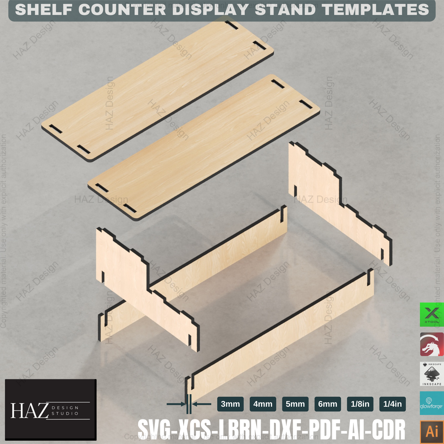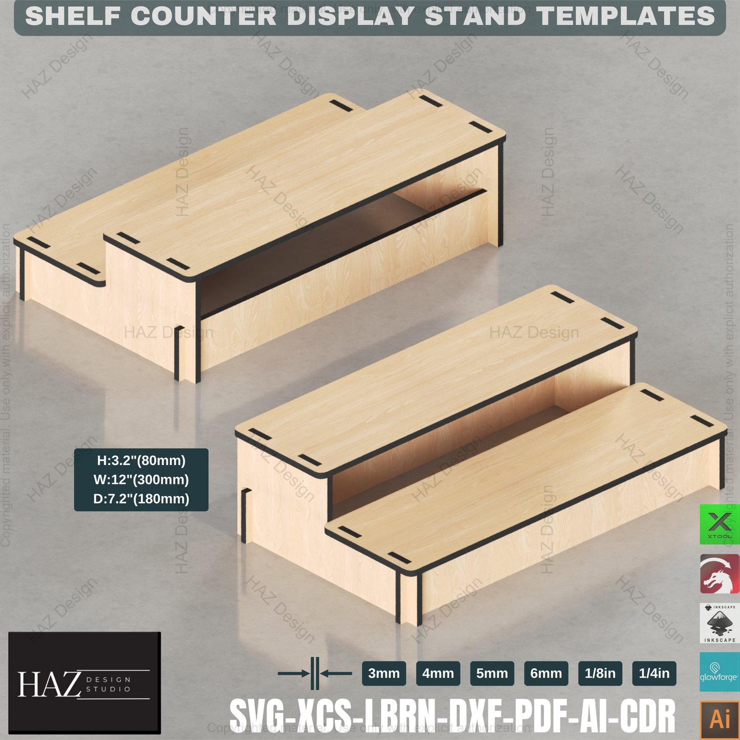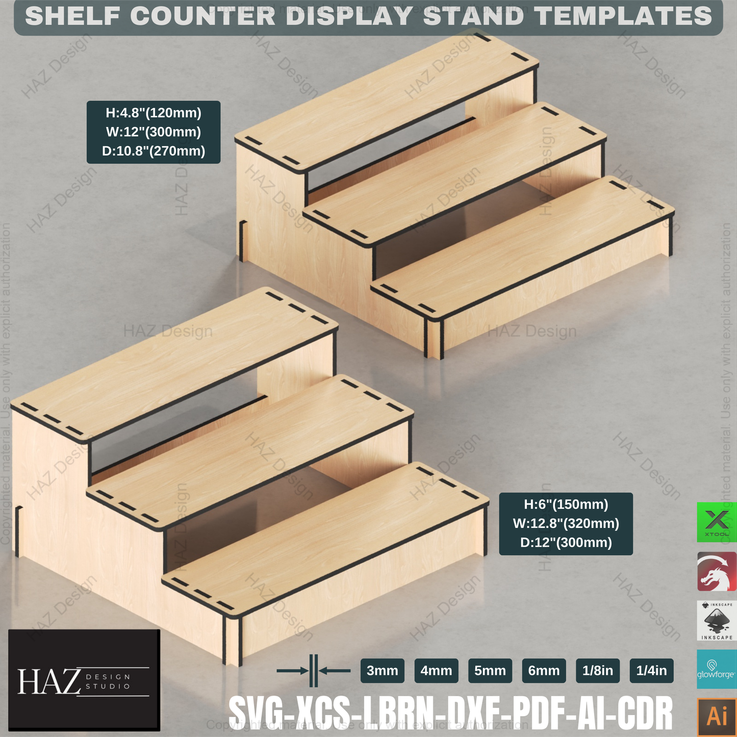 Elevate your product displays with our versatile Shelf Counter Display Stand Templates! This digital download provides everything you need to create professional-looking, tiered display stands using your laser cutting machine. Perfect for craft fairs, retail environments, market stalls, or even organizing your own workspace.