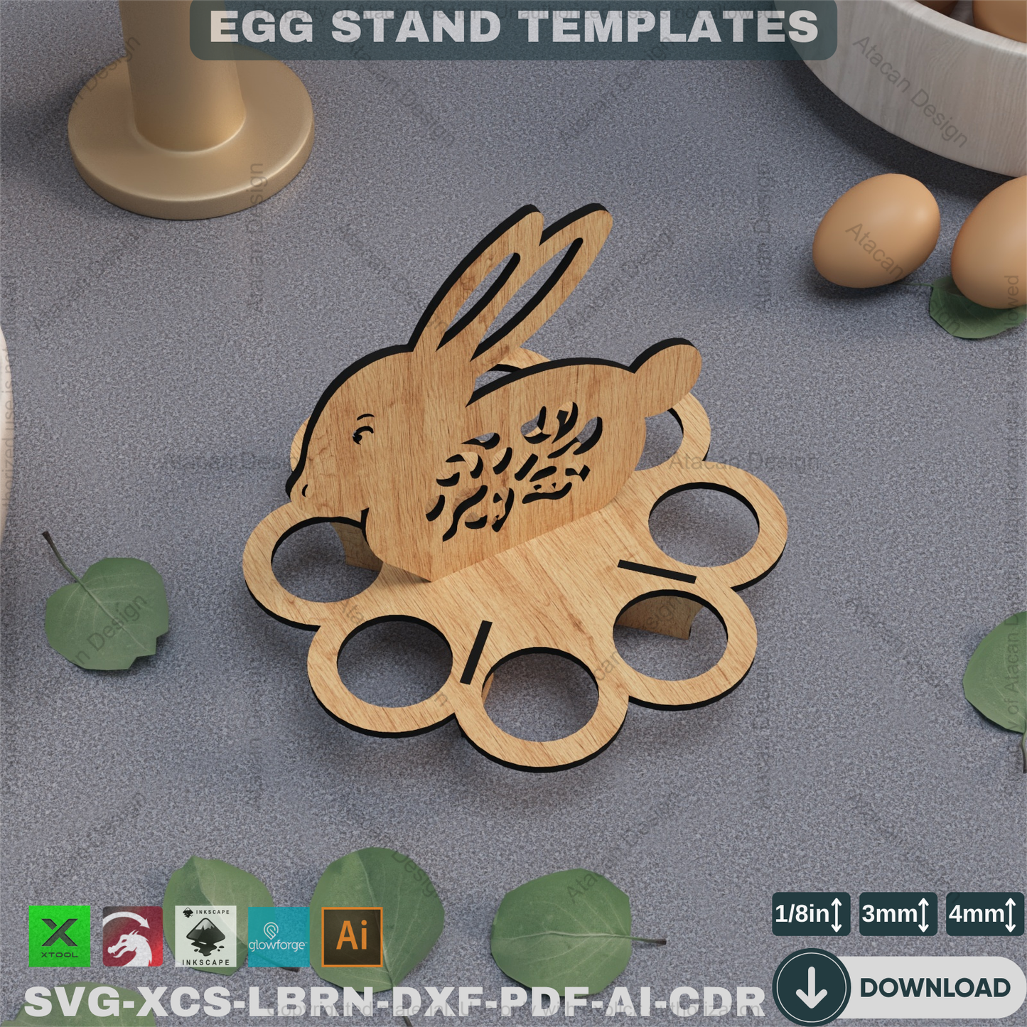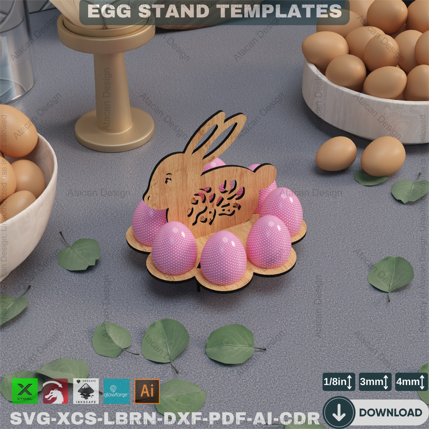 Laser Cut Easter Egg Stand - Decorative Wooden Easter Bunny Holder,DIY Easter Egg Display - Laser Cut Template for Festive Decor 861