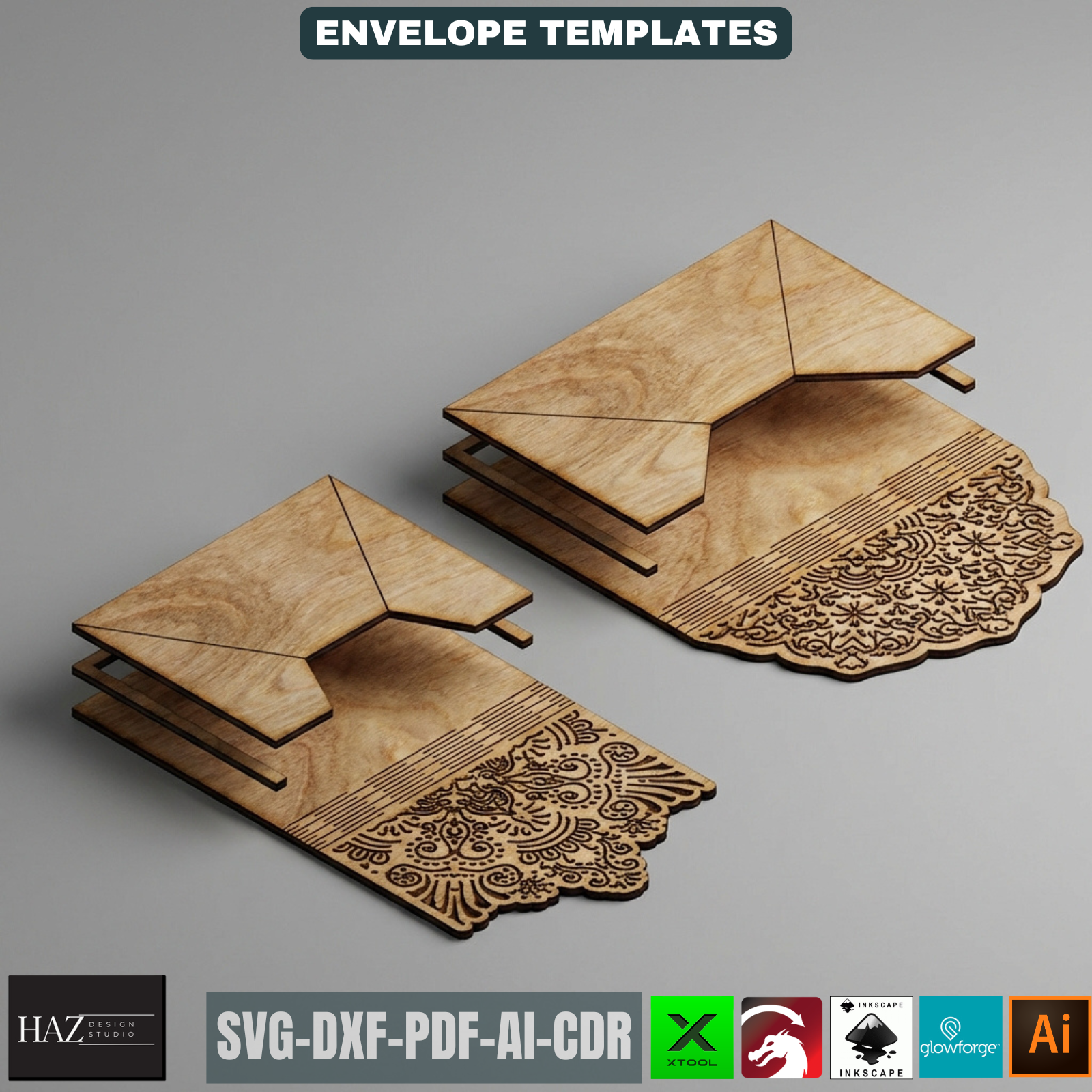 Laser Cut Envelope Template, Decorative Gift Card Holder, Wooden Money Envelope Pattern 519