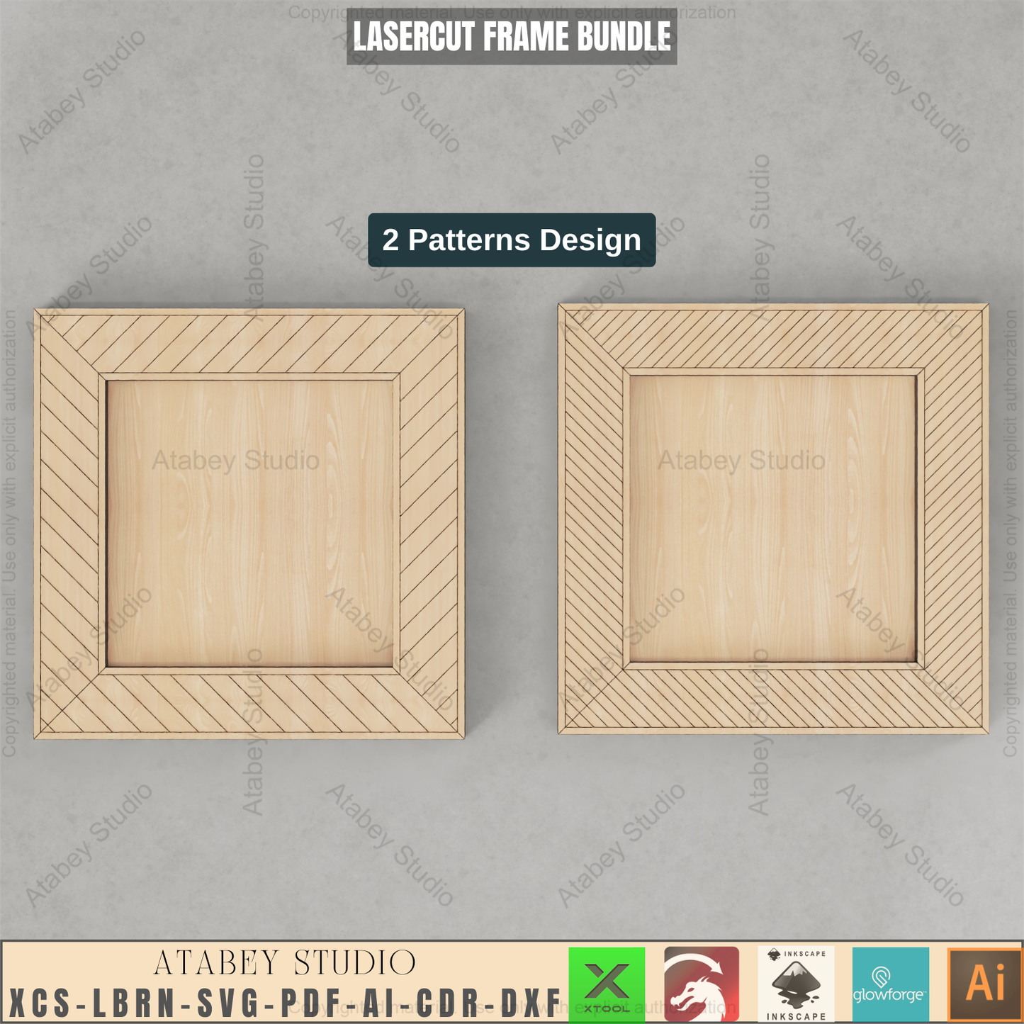 This bundle includes two beautifully crafted border patterns (as shown in the images â typically a diagonal line pattern and potentially another complementary geometric design) available in the following 9 convenient sizes to fit standard photos and art prints: