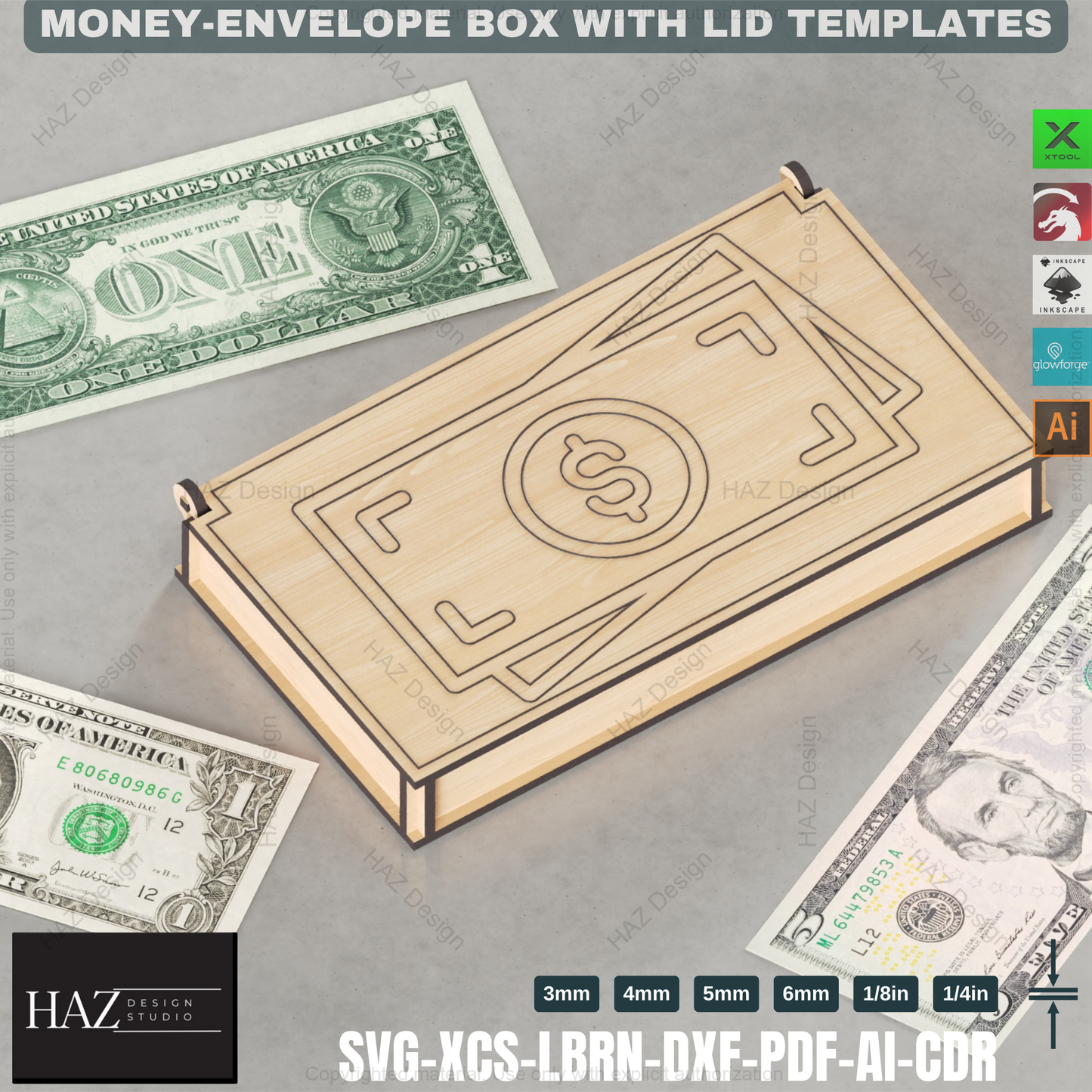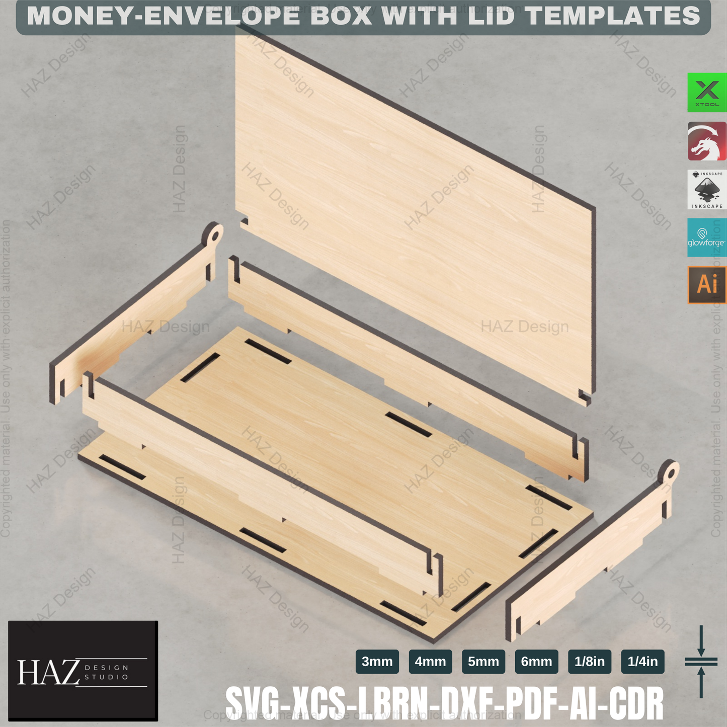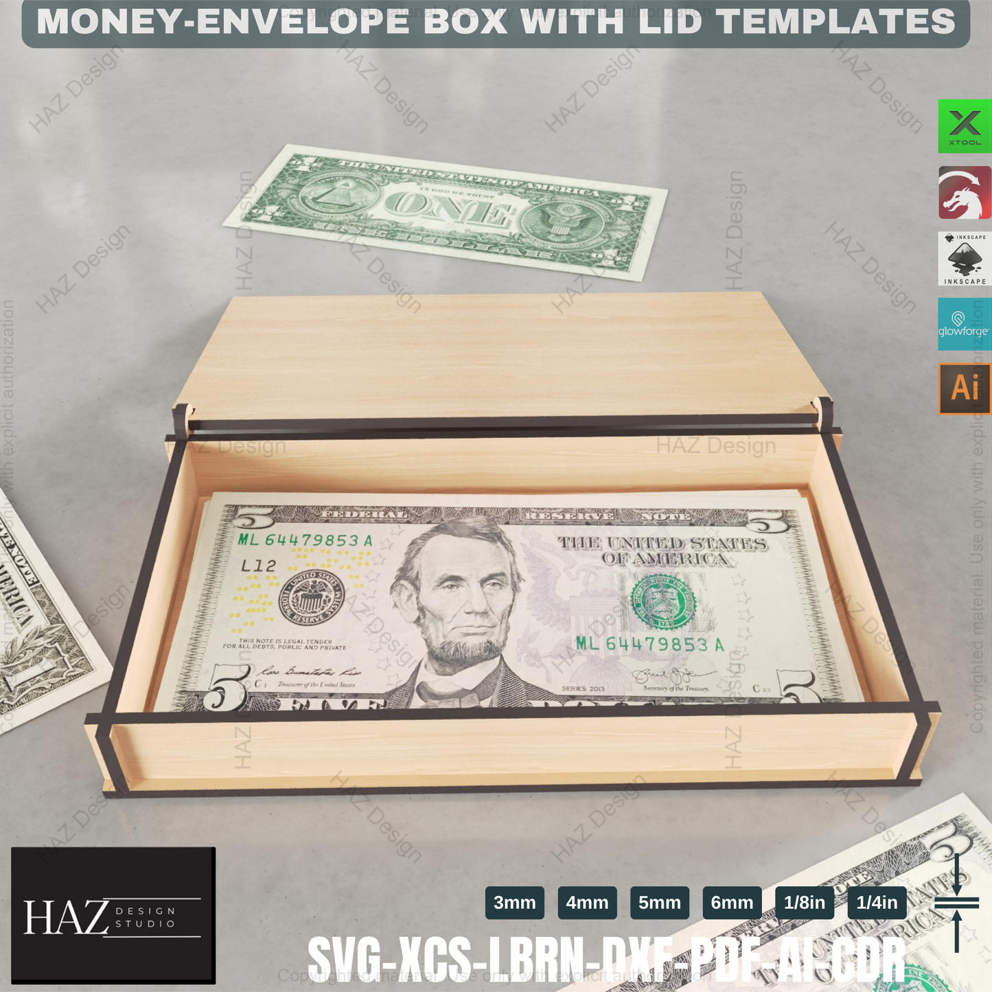 Laser Cut Money Box: Gift Cash in Style!Cash Envelope Box: Laser Ready SVG Template416