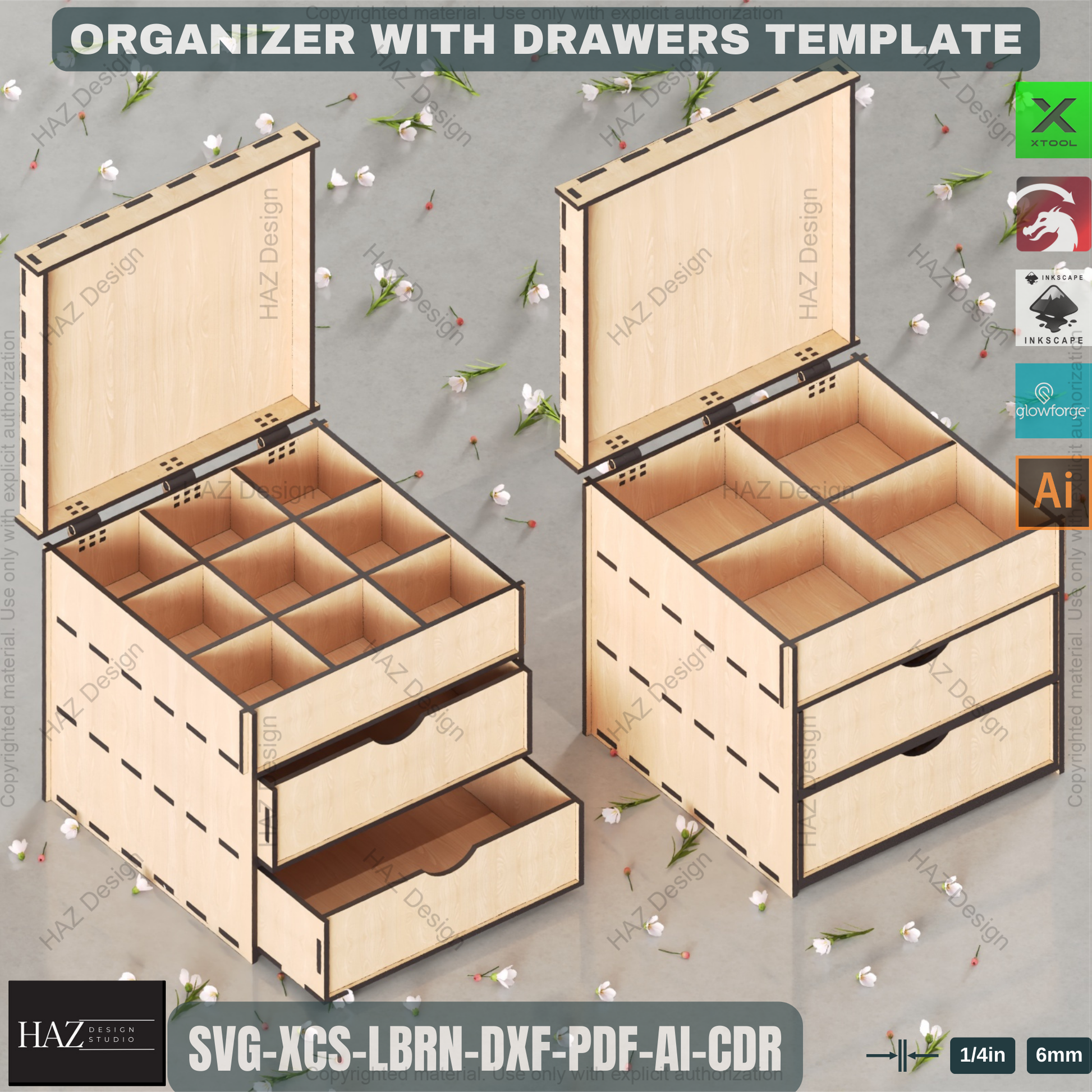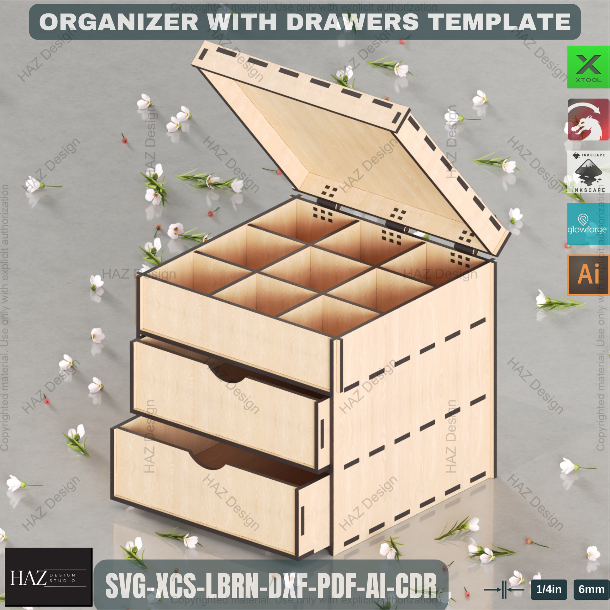 Craft the Ultimate Storage Solution: Laser Cut Organizer Box with Drawers Template!