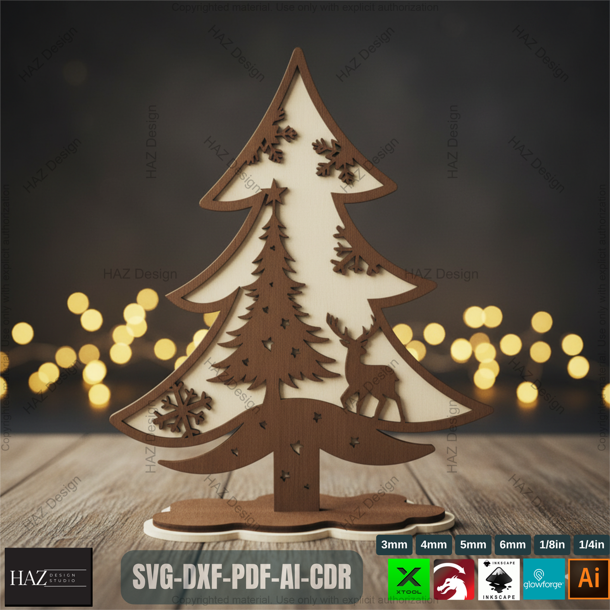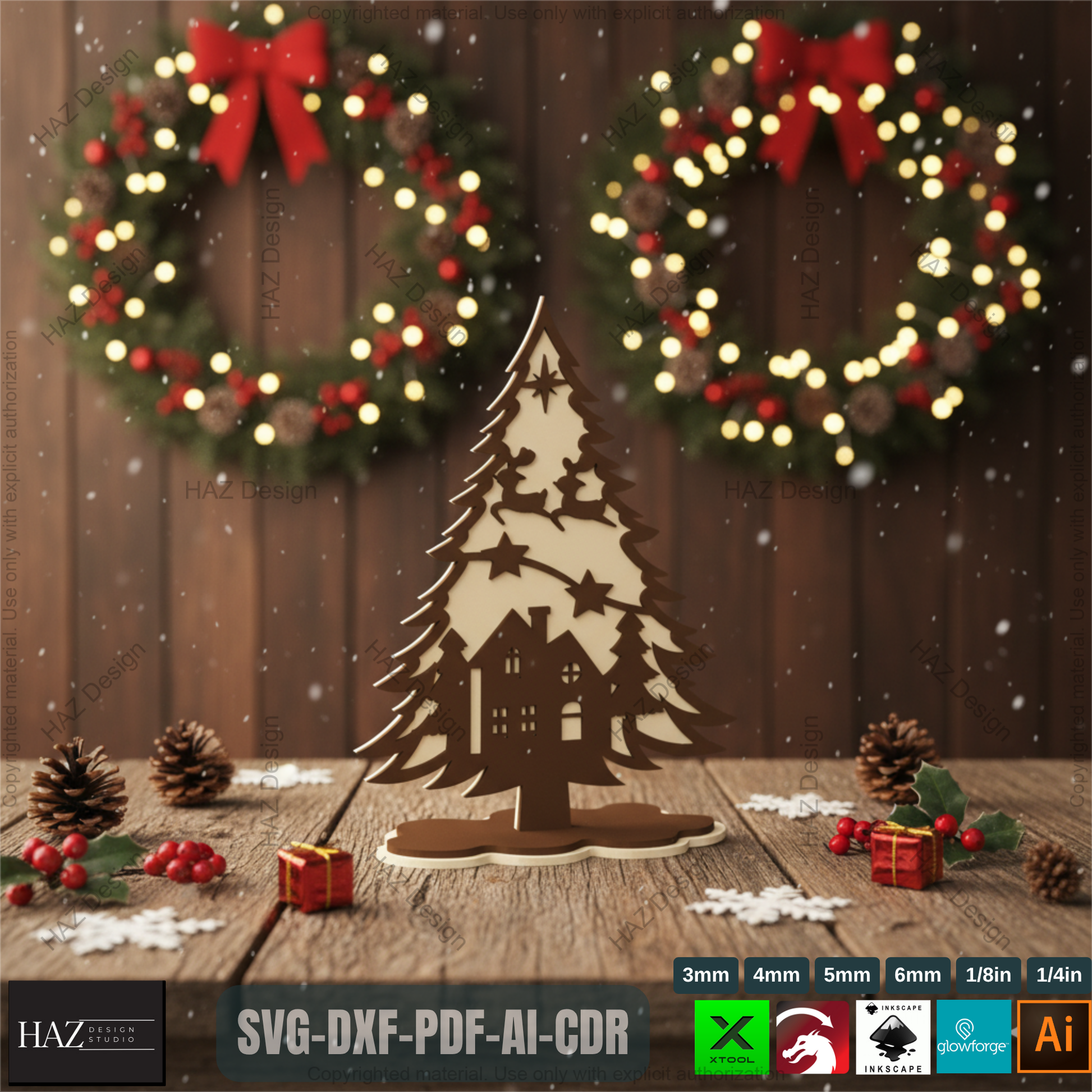 Laser Cut Standing Christmas Tree Ornaments Bundle, Decorative Wooden Xmas Tree Designs, Christmas Table Tree Decor,3D Holiday Tree 493