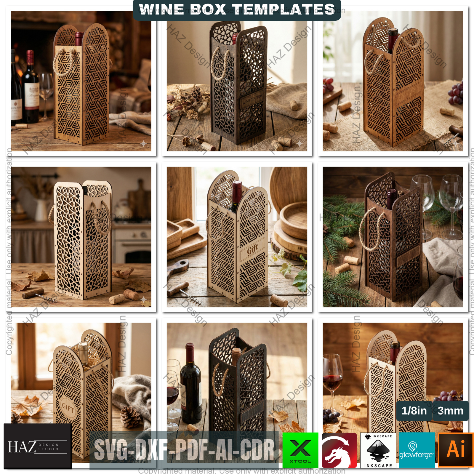 If you’re looking to create premium, eye-catching wooden wine gift boxes that customers will love, this bundle is a perfect addition to your laser design collection. 🍷✨
