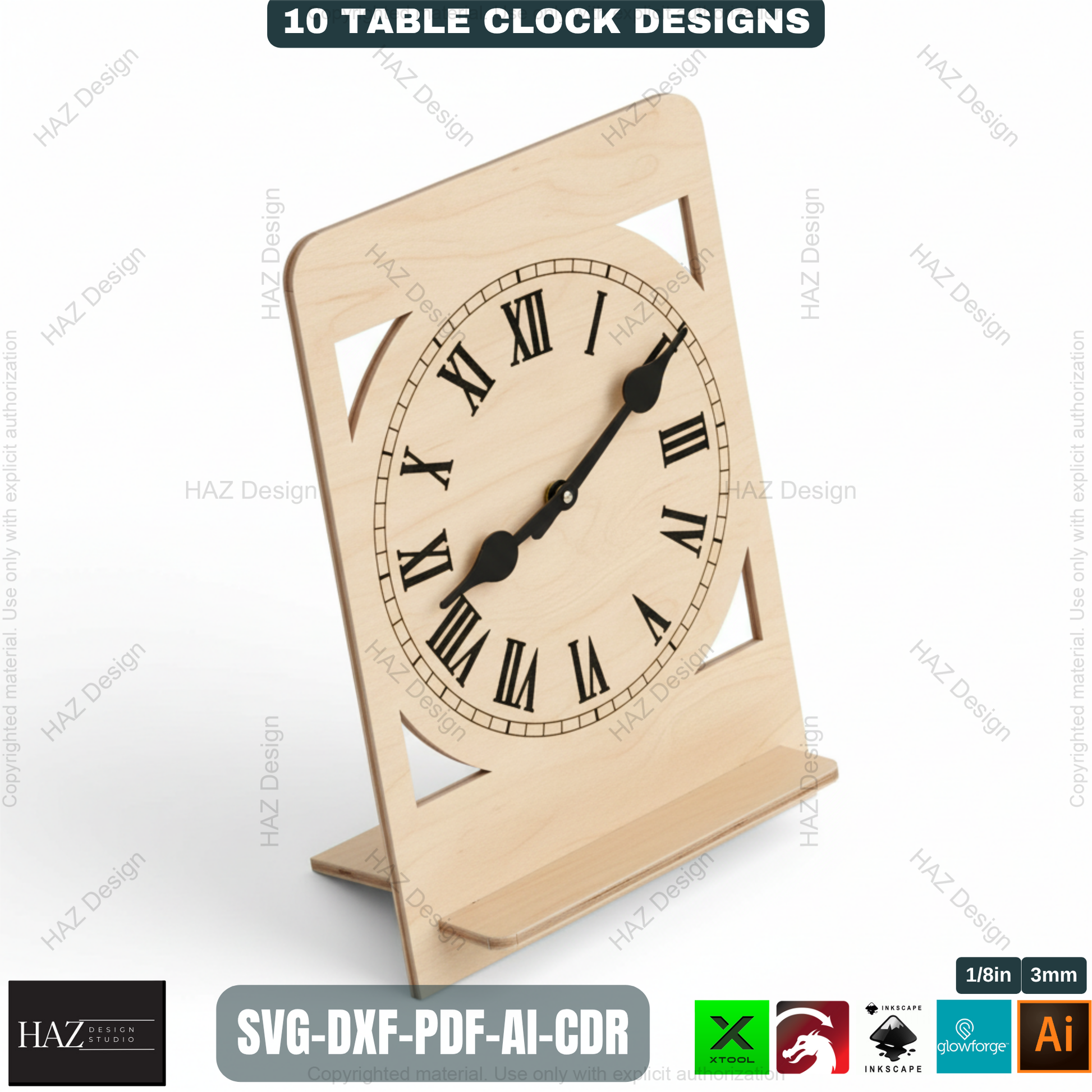Modern Wooden Table Clocks Templates for Laser Cutting | 10 Unique Desk Clock Designs | Digital Download for CNC & Laser Engravers 497