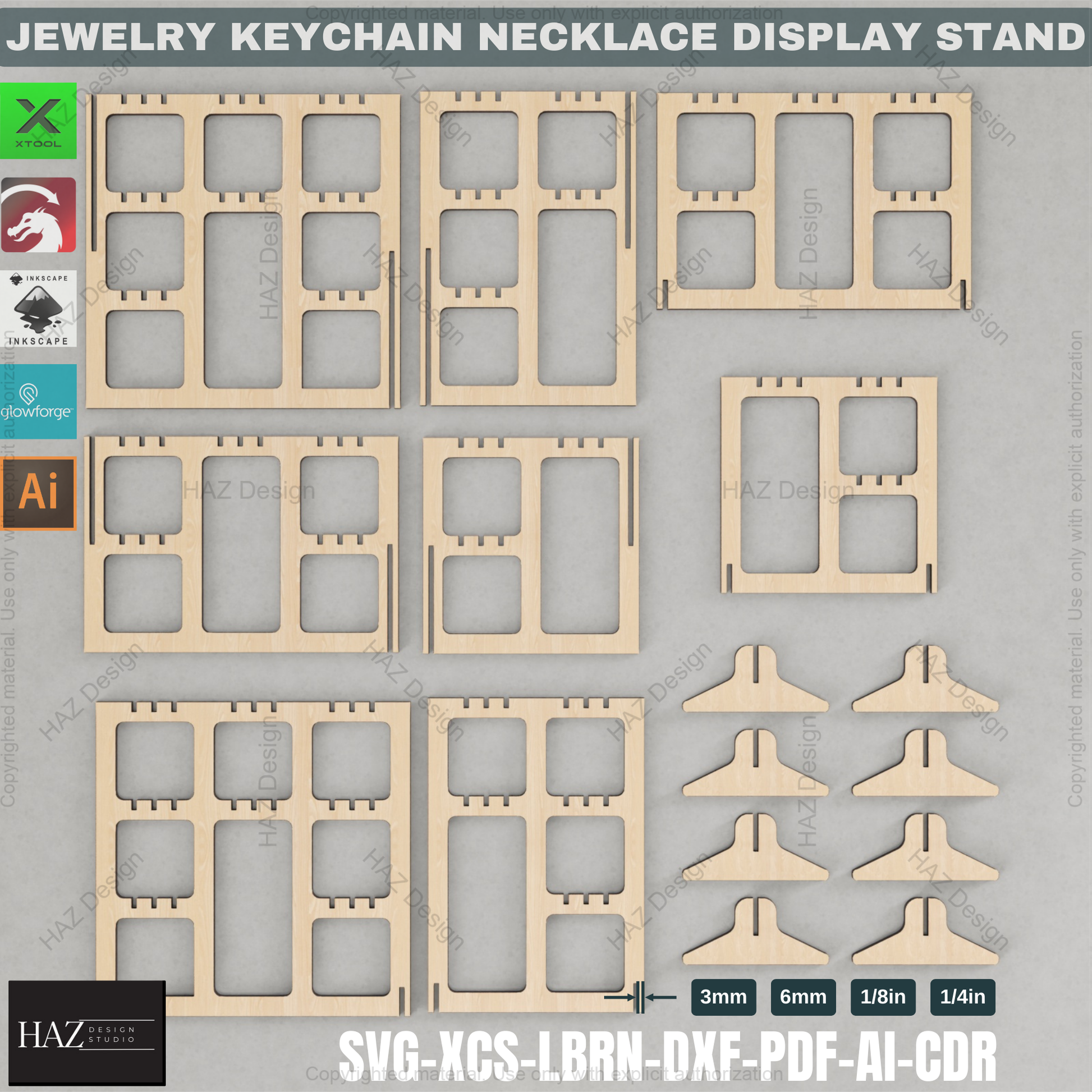 Tired of tangled necklaces and cluttered craft fair tables? Introducing the ultimate solution: the HAZ Design Studio Modular Jewelry, Keychain, and Necklace Display Stand! This meticulously crafted digital design file empowers you to create stunning, professional-looking displays that perfectly showcase your beautiful creations.