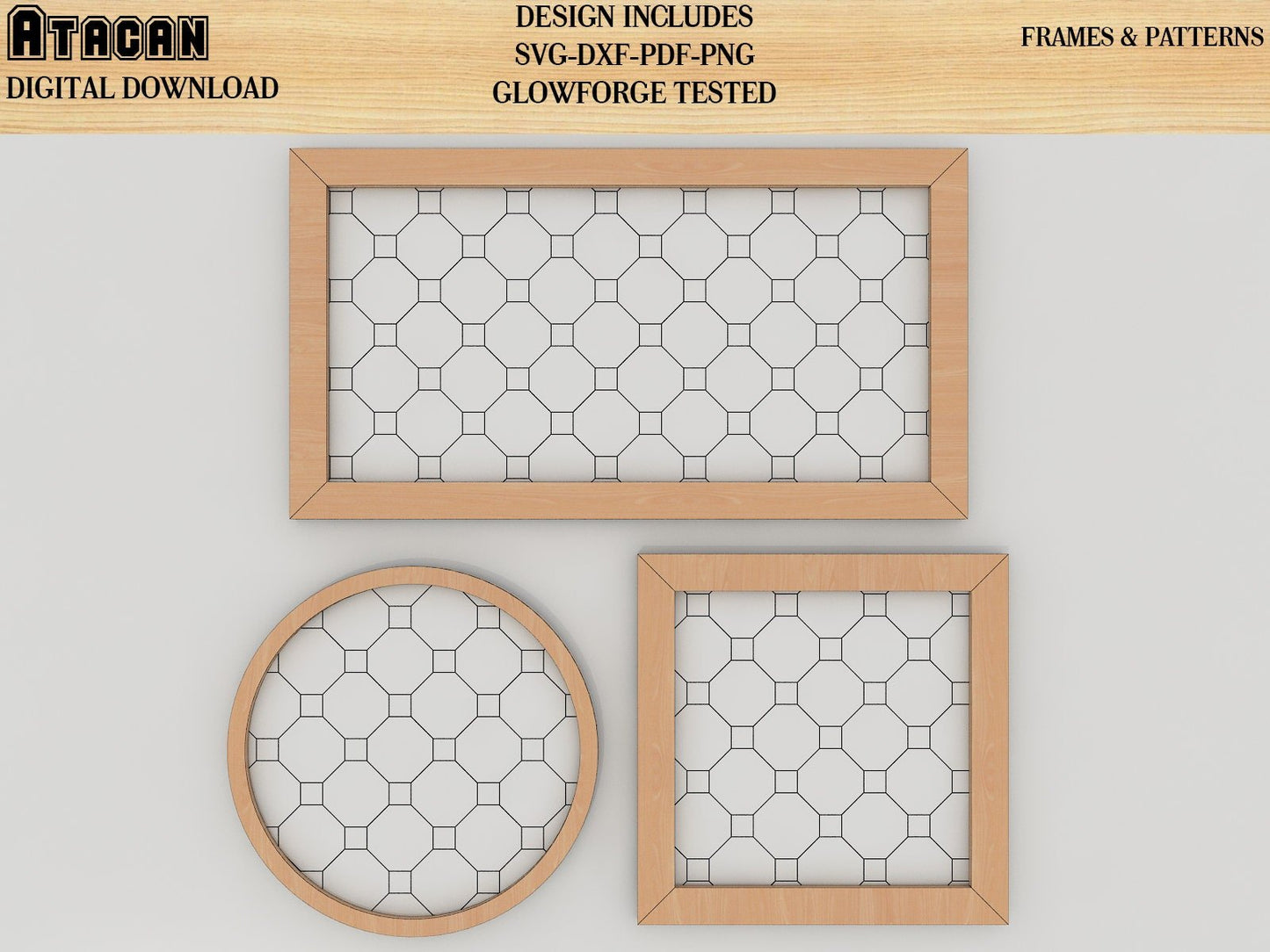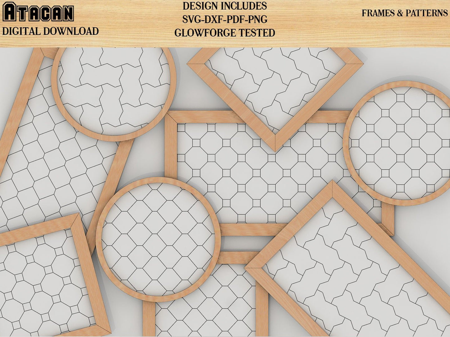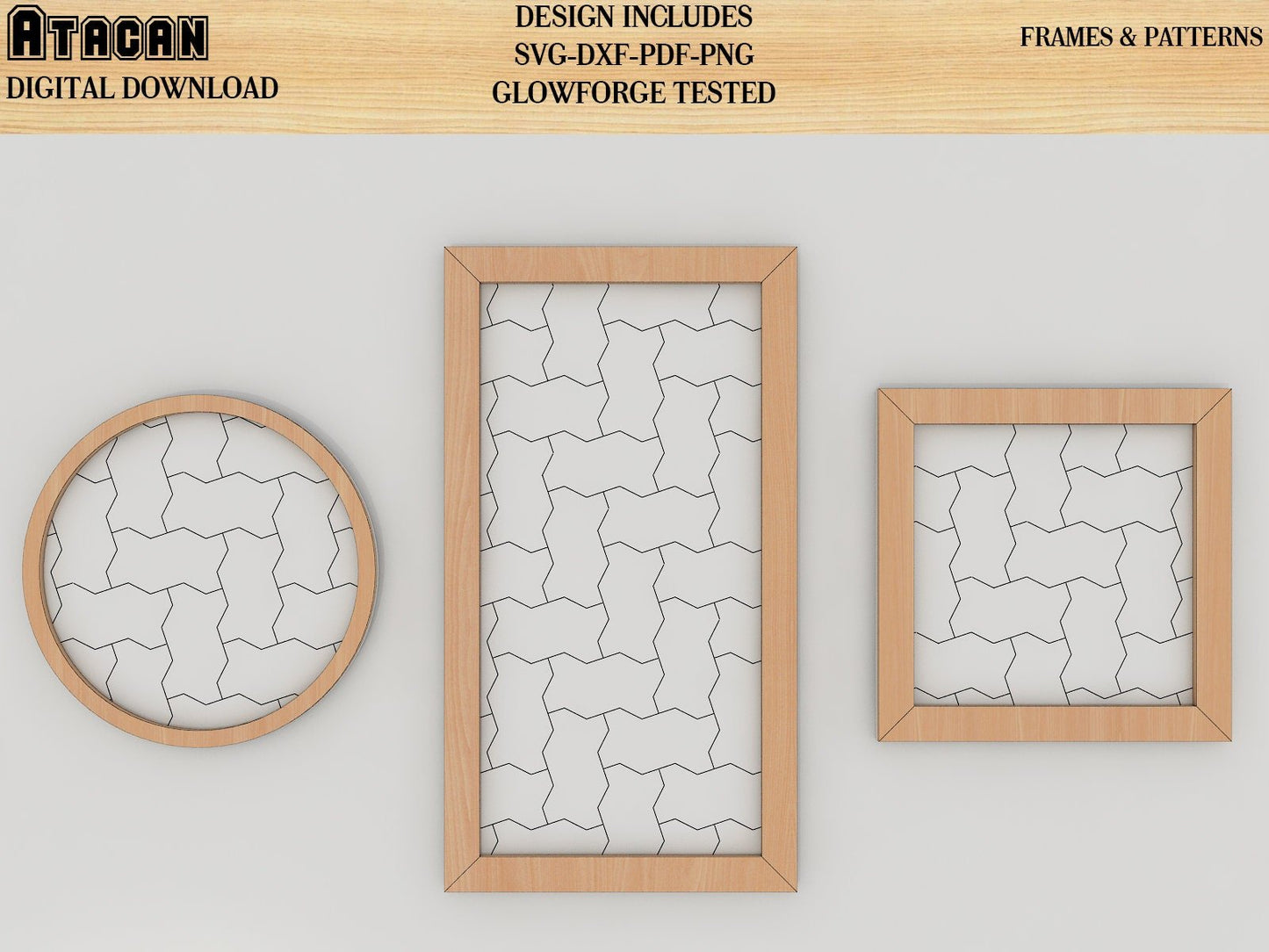 Patterns with Frame for Glowforge svg / Hexagon Square and Puzzle Pattern laser cut files 136
