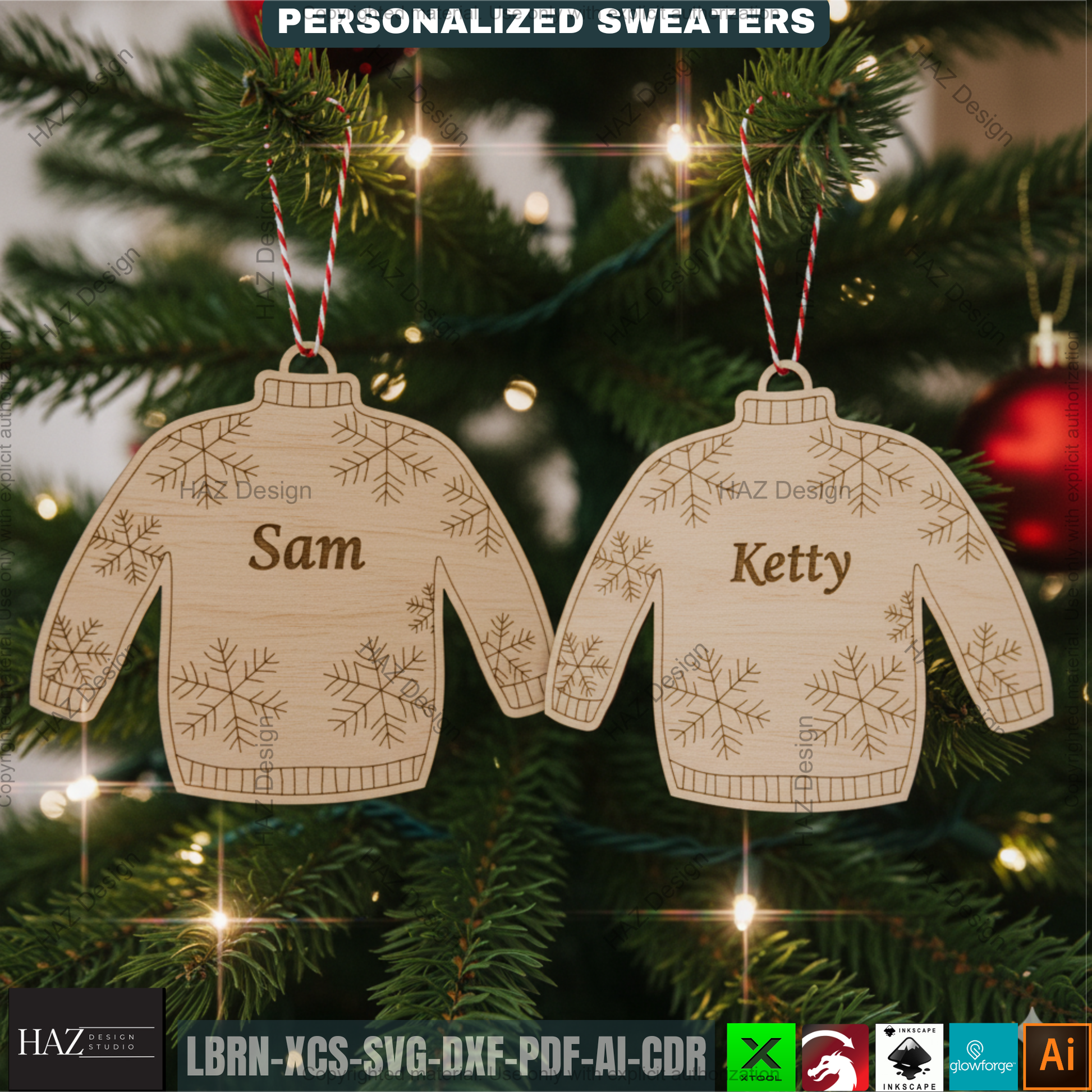 Imagine the joy of hanging personalized "Ugly Sweaters" featuring names like Adam, Julia, Emma, George, Adrian, or Sofia. This bundle includes four distinct, cozy holiday patterns (reindeer, snowflakes, Christmas trees, and fair isle designs) that are ready to be personalized and cut by your laser machine. This is the perfect project for crafters, small business owners, or anyone looking to create professional-quality, customized holiday items quickly.