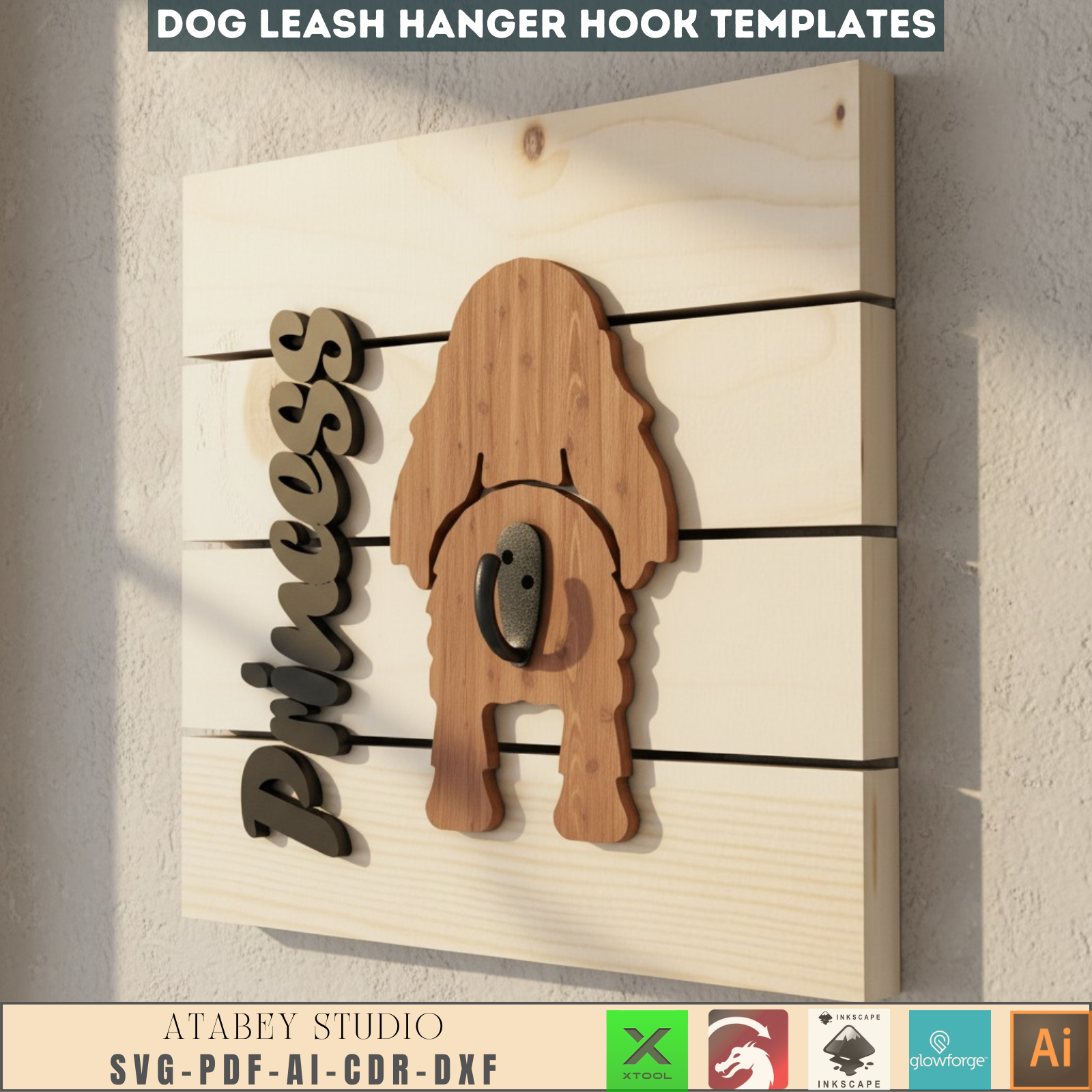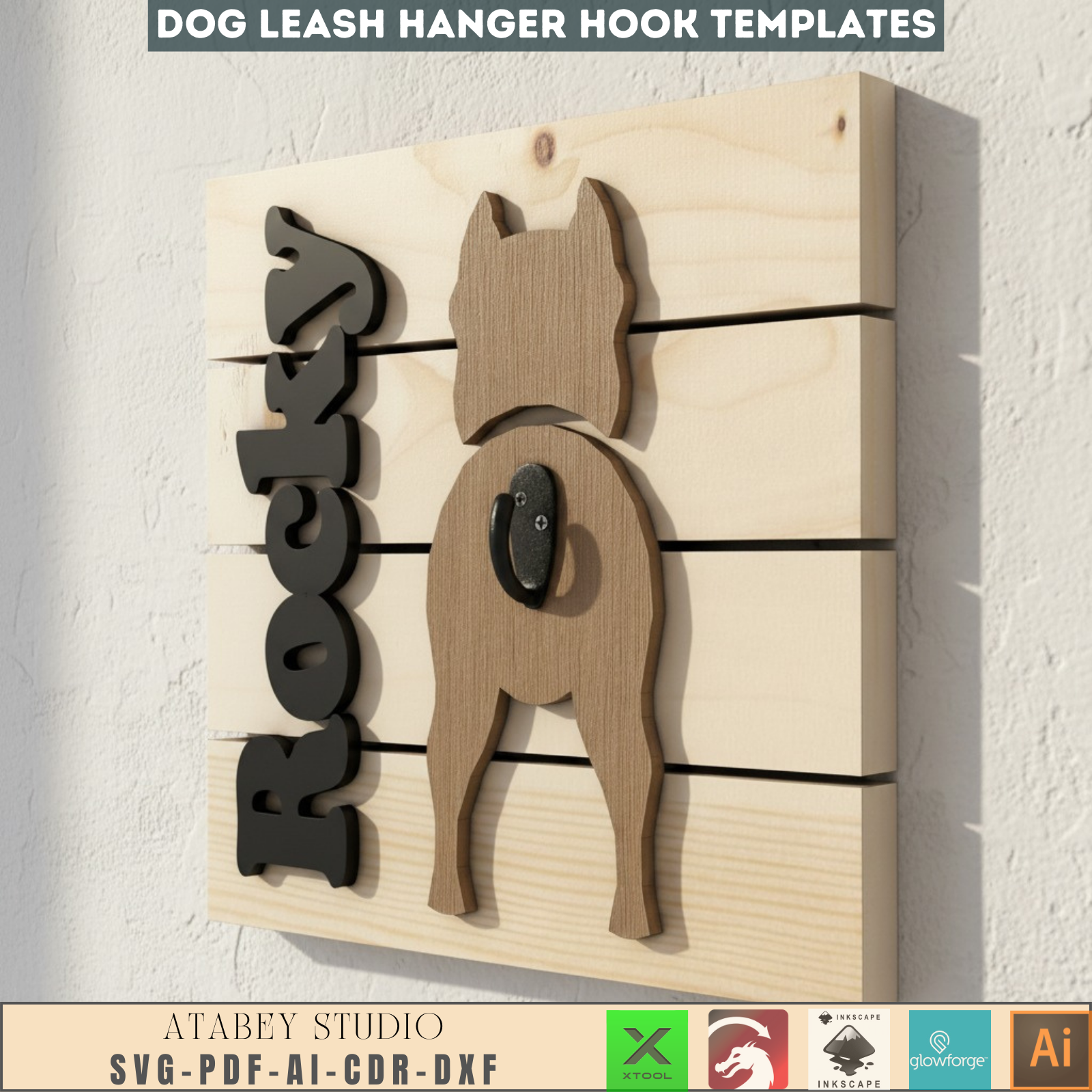 Personalized Dog Leash Holder SVG | Custom Pet Leash Hanger Laser Cut File | Dog Butt Wood Sign Digital Template for Xtool Glowforge