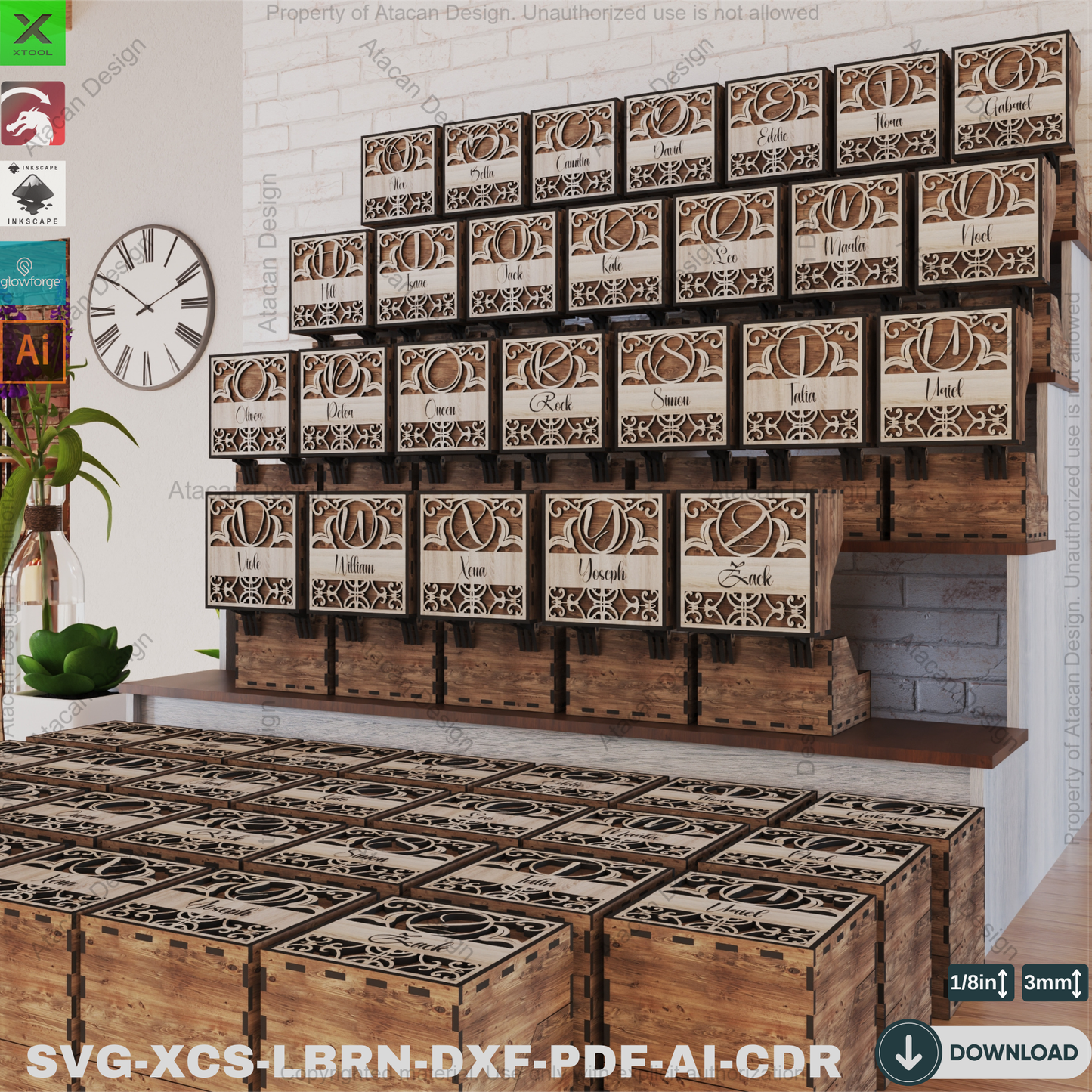 Unleash your creativity and craft stunning, personalized gift boxes with our meticulously designed Monogram SVG Letter Laser Cut Gift Box Template. This digital download provides you with everything you need to create beautiful, custom boxes perfect for weddings, jewelry, special occasions, or heartfelt gifts. With its elegant design and ease of customization, you can create unique treasures for any purpose. This design is offered in two different style