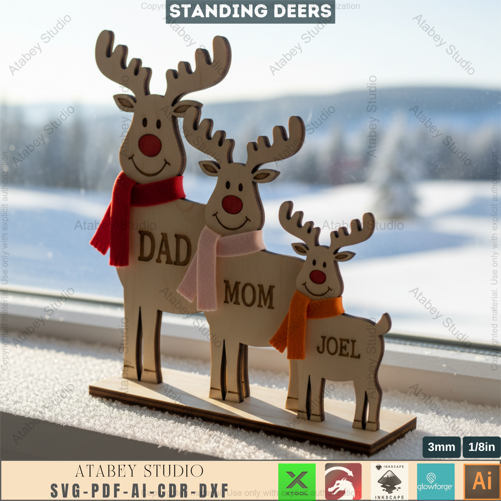 Personalized Reindeer Family Laser Cut Design, Freestanding Christmas Deer Decor, Custom Name Tabletop Sign 970