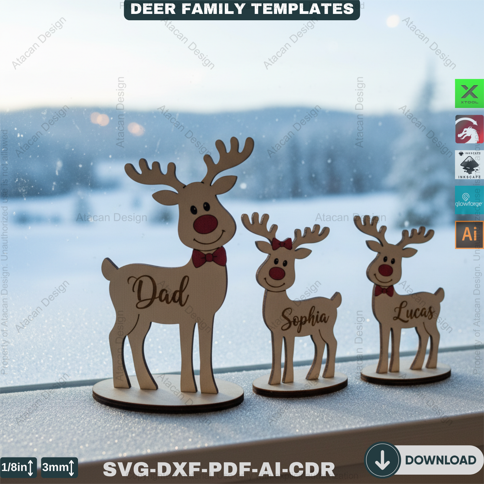 Bring the magic of Christmas into your home with this adorable Freestanding Reindeer Family Template! This digital design allows you to create a charming family of wooden reindeers — Dad, Mom, and Kid — perfect for festive decorations, gifts, or personalized family displays.