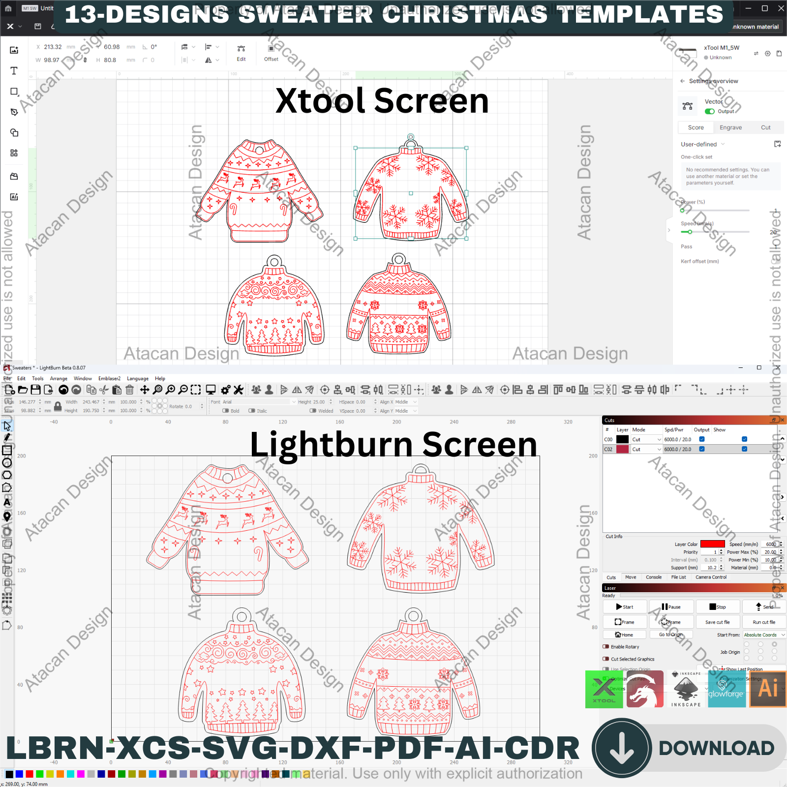 Bring the warm, cozy magic of the holidays into your craft projects with this 13-Design Sweater Christmas Ornament Bundle!