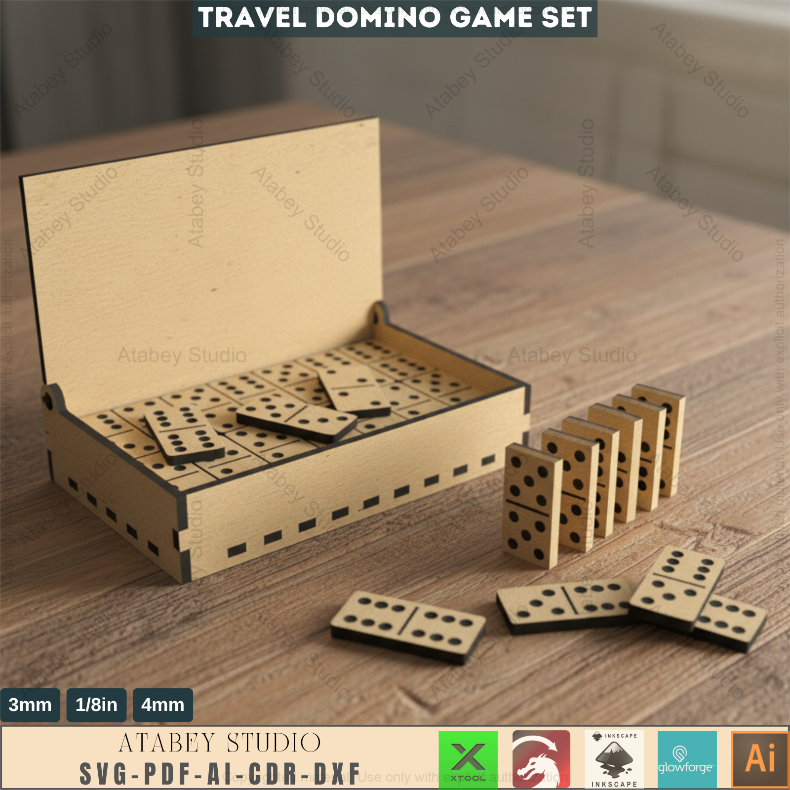 Portable Travel Domino Board Game Set / Laser Cut Dominoes Box / Wood DIY Box for Puzzle SVG, DXF Ai Cdr 553