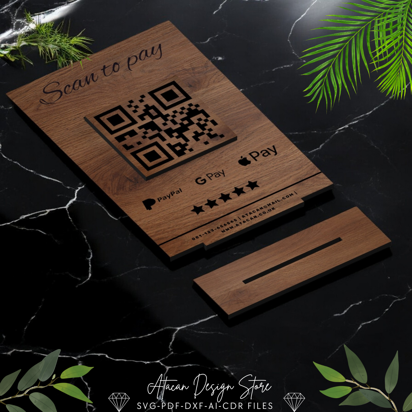 Elevate your business operations with our expertly designed QR Code Payment Sign. This elegant wooden sign is perfect for any bar, cafe, or restaurant, providing a stylish and efficient way for customers to scan and pay. The digital product includes SVG, DXF, AI, PDF, and CDR files, allowing you to create this beautiful QR code stand with ease using your laser cutting machine.