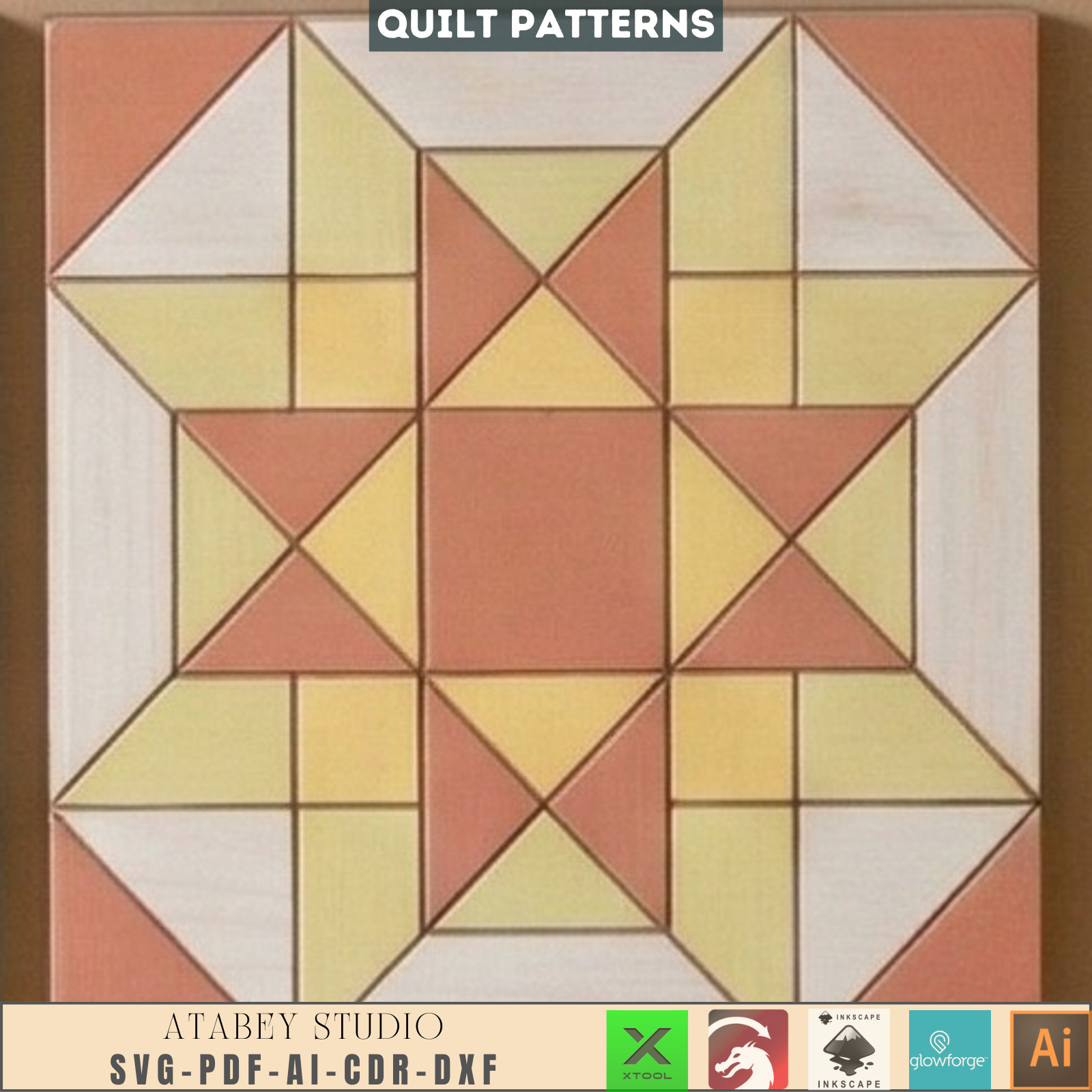 Each block is thoughtfully designed to blend traditional patchwork aesthetics with sleek, modern geometry. Simply cut the pieces, paint or stain them to match your desired color palette, and assemble your beautiful wooden canvas.