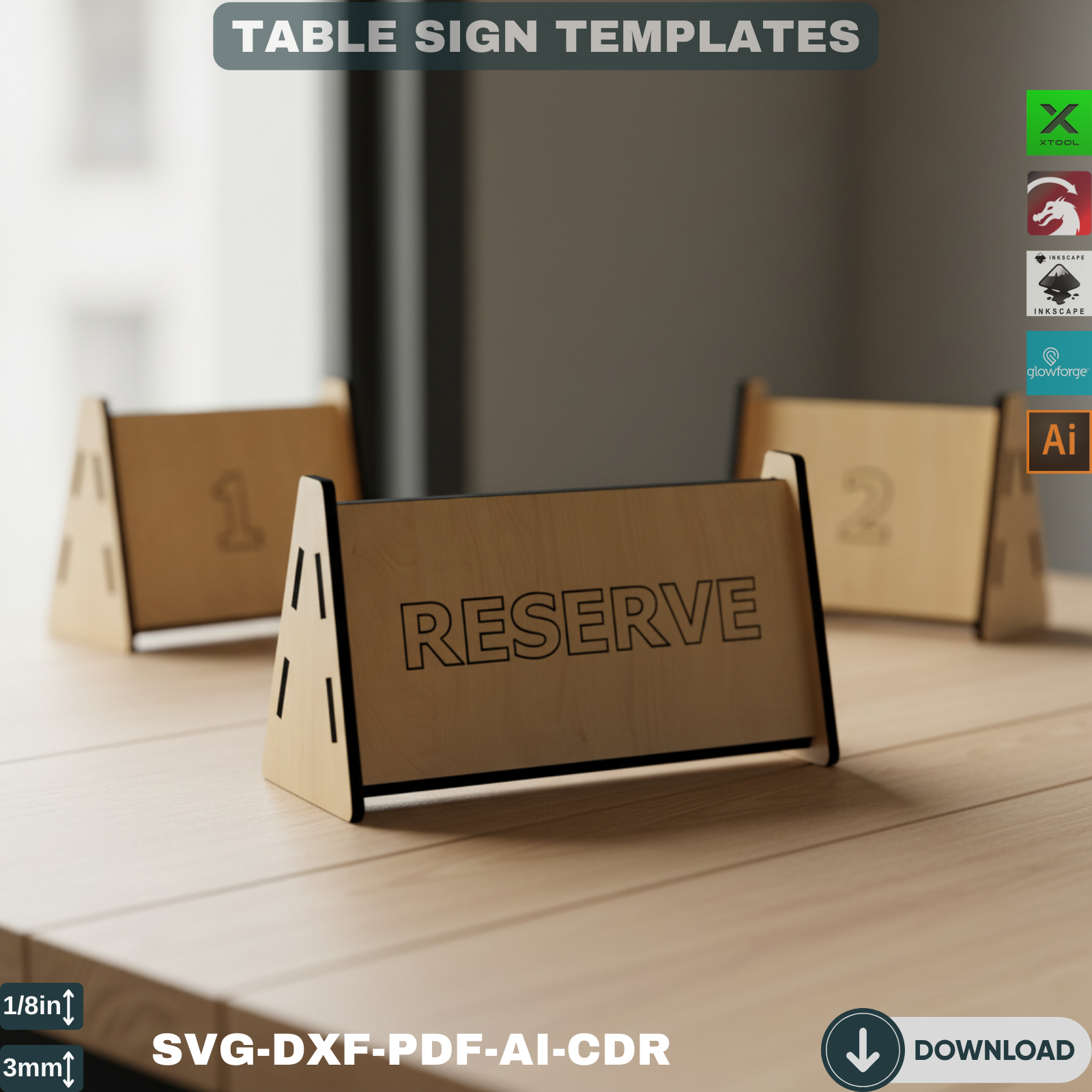 Reserved Table Sign & Menu Holder - Wooden Table Number Signs for Events, Wedding, Restaurant Decor, Digital Laser Cut Files