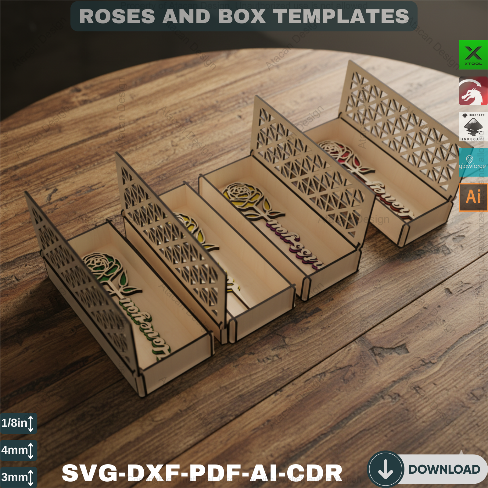 Whether you’re crafting a romantic gift for someone special or adding a creative touch to your event decorations, this rose box laser cutting file set offers unlimited possibilities. With its intricate design and versatility, it’s perfect for making something truly unique.