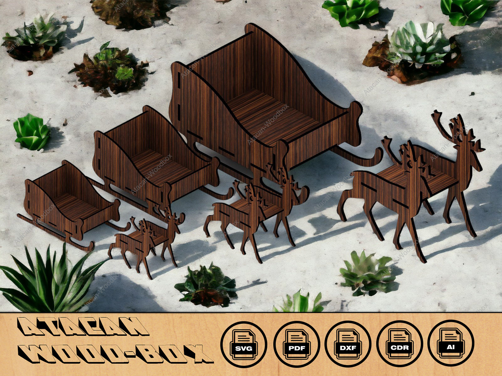 Santa Claus Christmas Sleigh / Deer and sleigh / Noel Decor / Xmas Wooden Reindeer / Glowforge vector 273