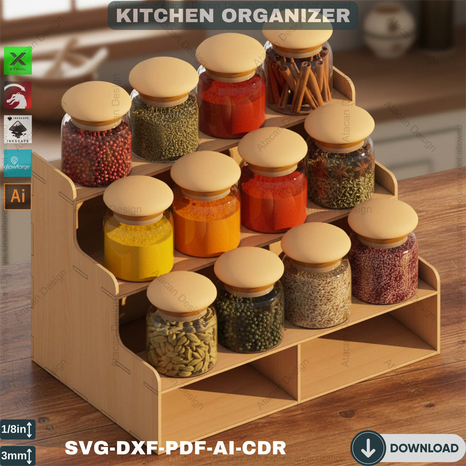 Usage and Applications: This DIY spice rack is ideal for organizing spices, herbs, and small jars, making it a perfect addition to any kitchen. Whether you are a hobbyist or a professional, these templates offer precision and beauty in every cut, allowing you to create a custom and stylish spice organizer that fits your needs.