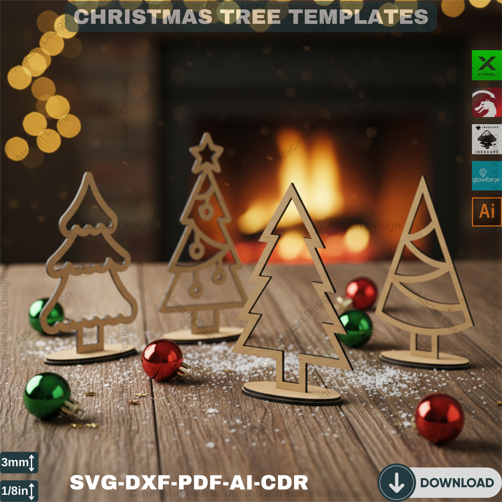 Standing Christmas Trees / Tree Laser Cut SVG / Noel Tree Gift Templates / Glowforge Cricut Tree SVG DXF Ai Cdr Pdf Files 387