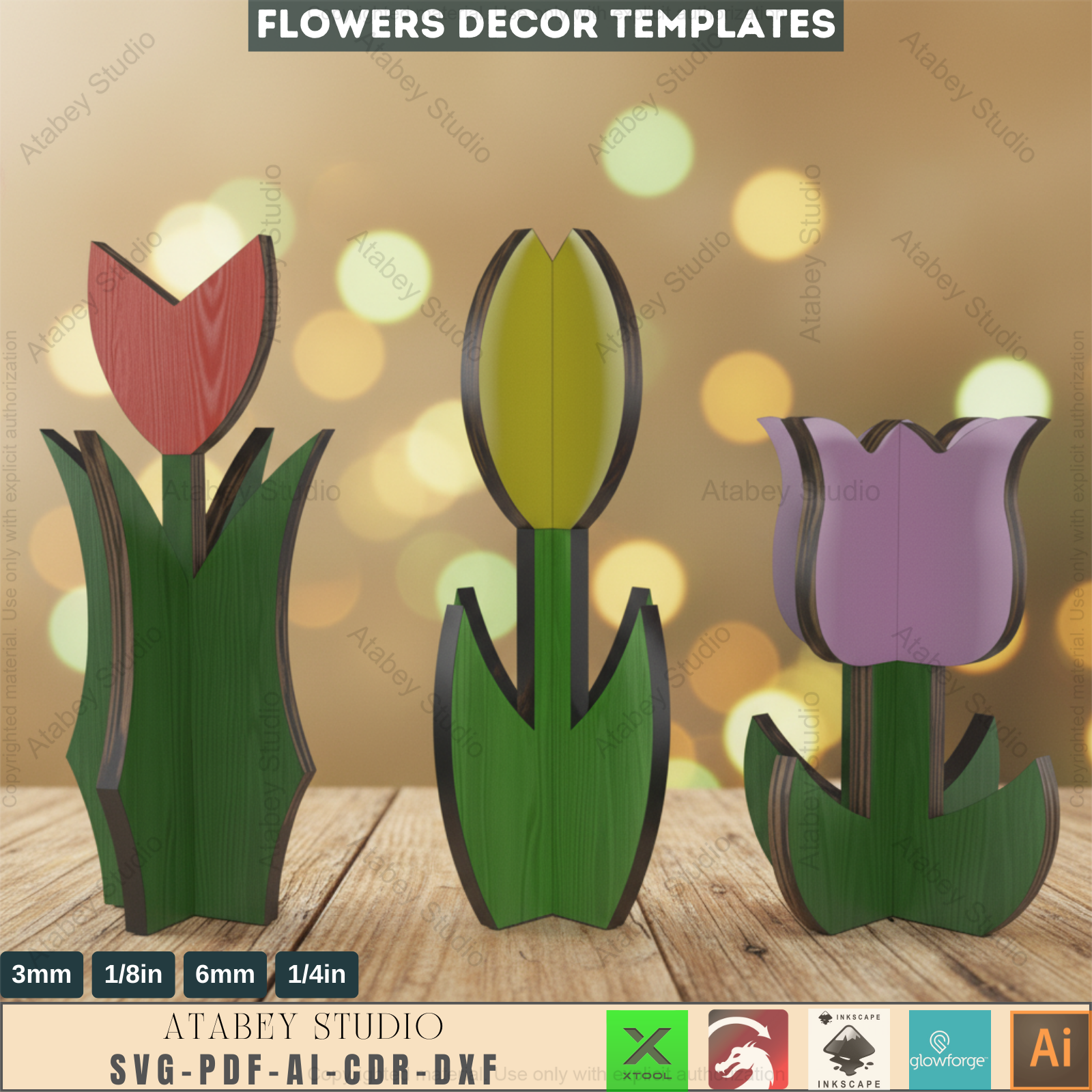 Tulip Flower Laser Cut files / Tulip Flower Cutting File / Acrylic Wood Spring Flowers SVG DXF Ai CDR Pdf 276