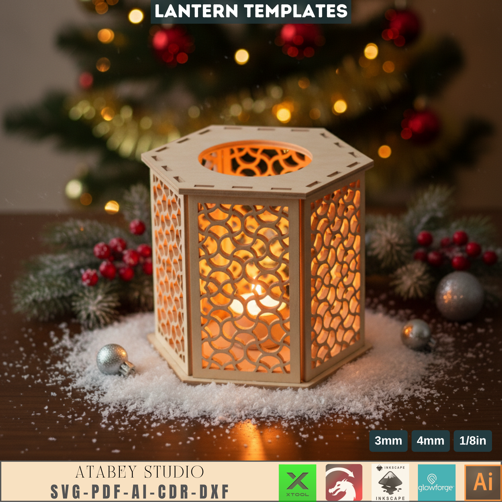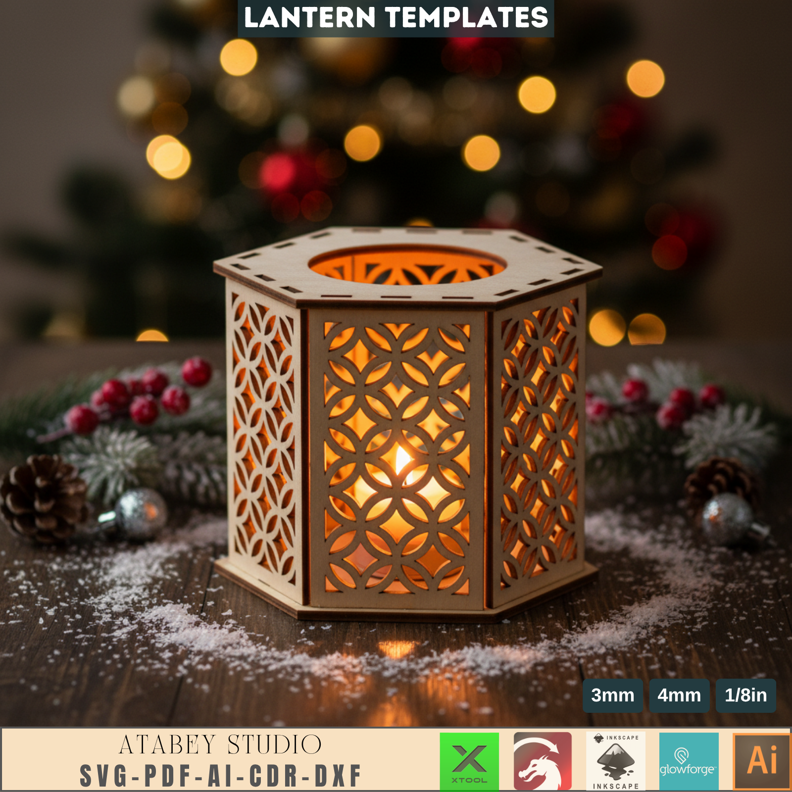 Unique Laser Cut Star Ornaments for Christmas Tree Decor & Holiday Crafts - Lantern Night Light Template, Laser Cut Wood Lampshade Plan, DIY Table Centerpiece 958