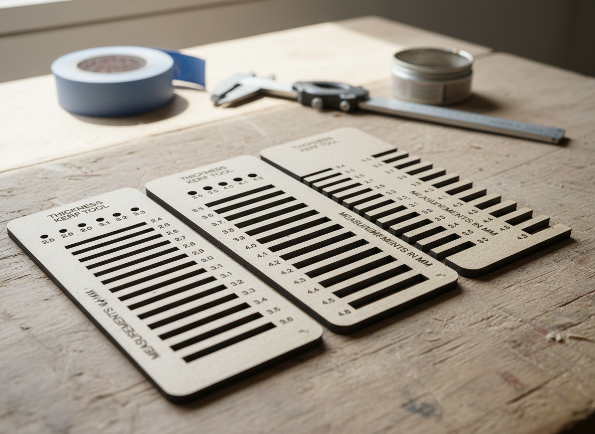 Introducing our Wood Kerf Tool Svg, the perfect companion for precision woodworking! This versatile tool is designed to help you achieve accurate material thickness measurements every time. With our Material Thickness Test feature, you can effortlessly gauge the thickness of your wood or any other material. The Kerf Finder svg allows you to easily locate and measure the width of the kerf, ensuring precise cuts every time. Our laser cut file comes in both inch and millimeter measurements, catering to your specific needs. Whether you're a professional woodworker or a DIY enthusiast, this Metric design kerf guide is a must-have tool for your workshop. Compatible with Glowforge, Omtech, and Lightburn Machines, our Material thickness gauge / kerf tool will elevate your woodworking projects to the next level. Invest in the ultimate precision and get your hands on this invaluable tool today!