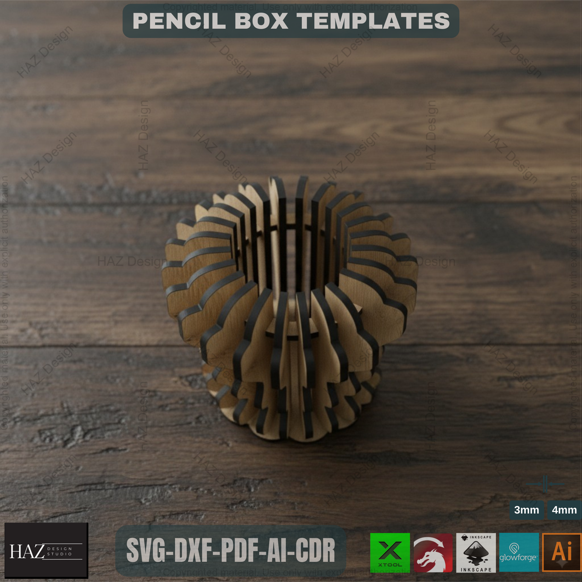 This product includes SVG, DXF, Ai, PDF, and CDR file formats, making it a versatile and accessible option for your laser cutting projects. Whether you're looking to create a unique pen holder for your desk or a custom gift for someone special, this design combines functionality and aesthetics in one elegant solution.